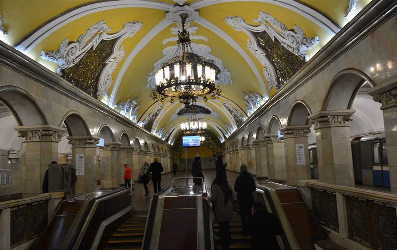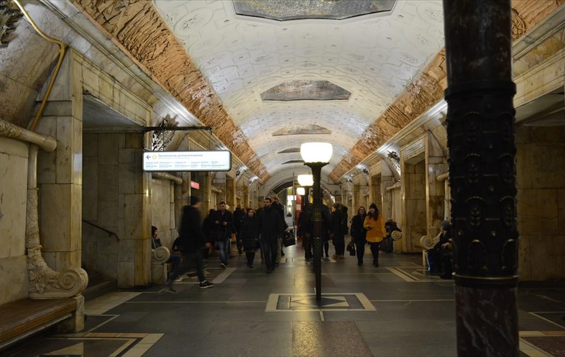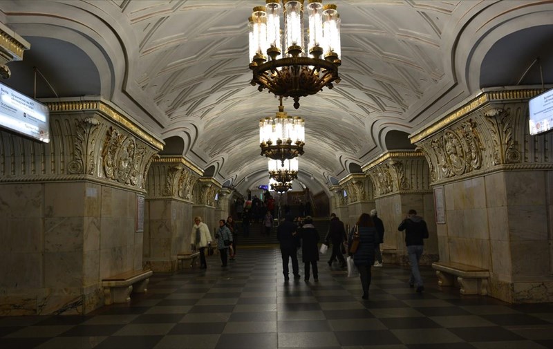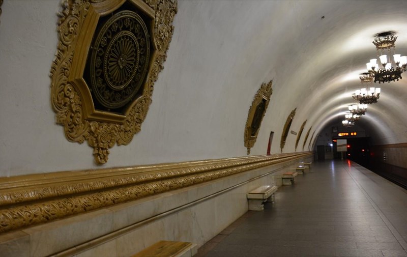1. Το μετρό, και κυρίως τις γραμμές της Σοβιετικής εποχής. Το μετρό της Μόσχας θεωρείται από τα πιο όμορφα στον κόσμο, σήμερα διαθέτει 206 στάσεις και οι 44 από αυτές θεωρούνται πολιτιστικά μνημεία. Βιτρό, μωσαϊκά, μάρμαρα, πολυέλαιοι, αγάλματα, πίνακες, κομμουνιστικά σύμβολα, κά κοσμούν αυτό το υπόγειο κομψοτέχνημα βουτηγμένο σε μια αριστοκρατία άλλης εποχής.