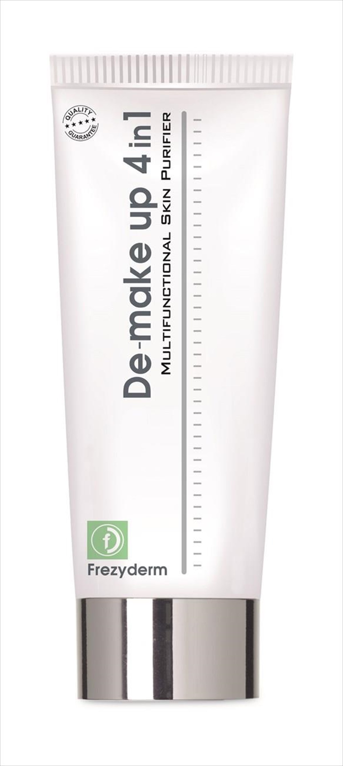 > De Make up 4 in 1, Frezyderm: Απαλό γαλάκτωμα καθαρισμού για το πρόσωπο και τα μάτια. Αφαιρεί με μια κίνηση το μακιγιάζ και τους ρύπους, αφήνοντας την επιδερμίδα καθαρή και απαλή, με διαρκή αίσθηση άνεσης (στα φαρμακεία).