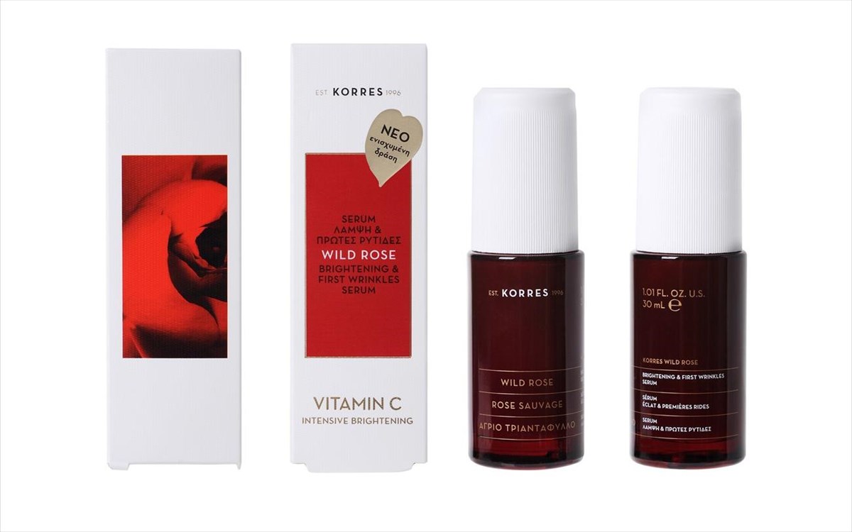 > Wild Rose Brightening & First Wrinkles Serum Vitamin C, Korres: Aντυριτιδικός ορός ματιών (και προσώπου) με βιταμίνη C. Αναζωογονεί το βλέμμα και χαρίζει άμεση λάμψη στην επιδερμίδα γύρω από τα μάτια (στα φαρμακεία).