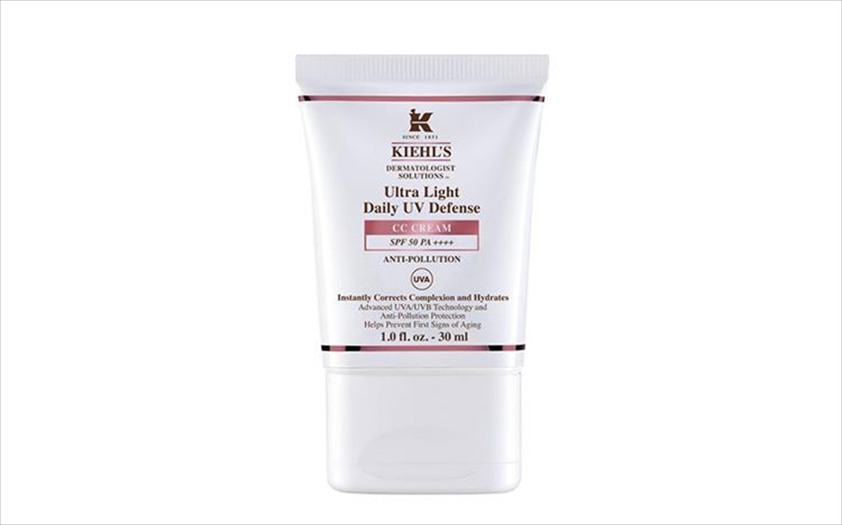 - Ultra Light Daily UV Defense CC Cream SPF 50,Kiehl’s: Κρέμα CC για ομοιόμορφο χρώμα και προστασία από την αστική μόλυνση και τις ακτίνες UV.