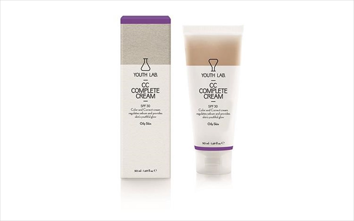 - CC Complete Cream Oily Skin SPF 30,Youth Lab: Κρέμα CC για ομοιόμορφη κάλυψη, ρύθμιση της λιπαρότητας και υψηλή προστασία από την UV ακτινοβολία και τις ελεύθερες ρίζες.