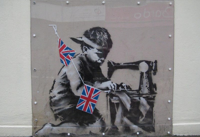 Η λεζάντα του «Devoted Parliament» παραπέμπει σε ένα stencil του Banksy.