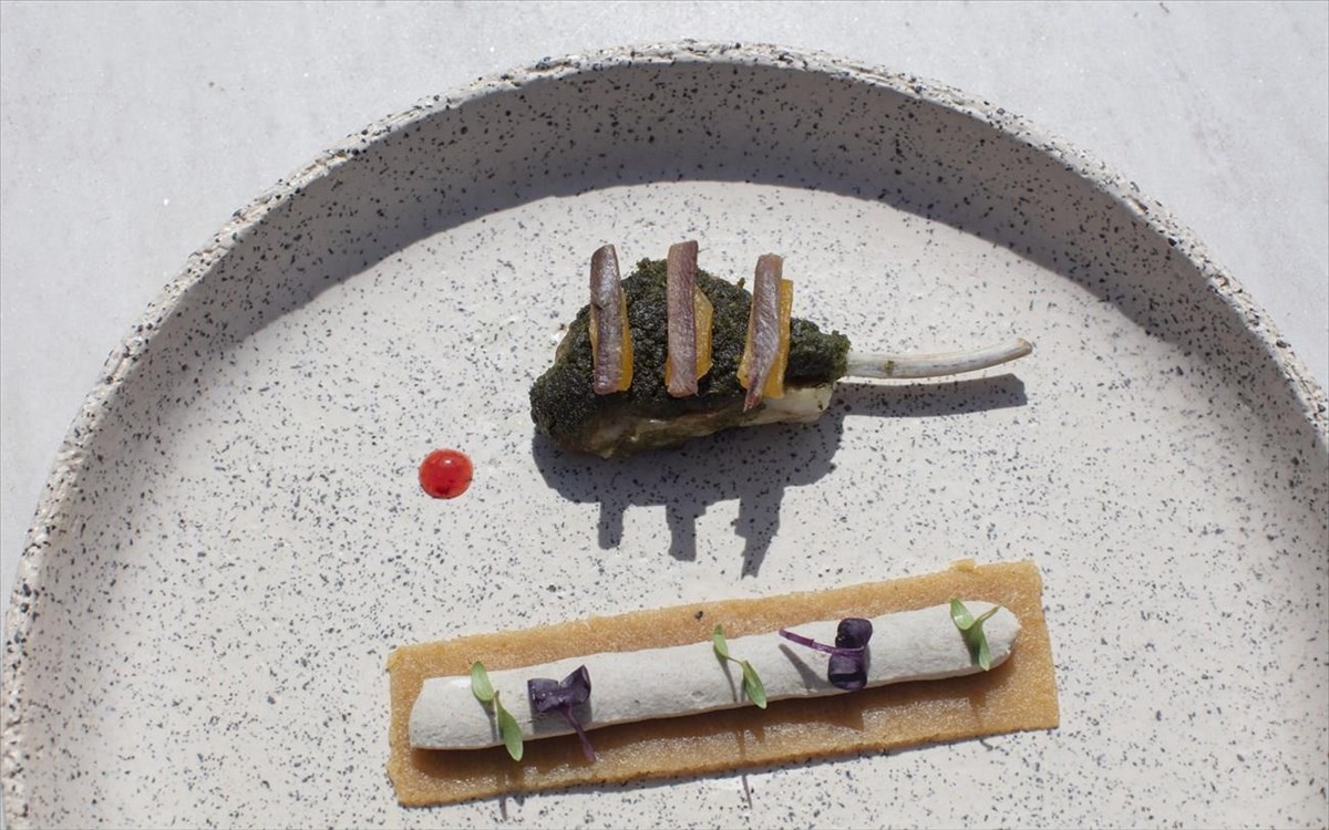 Οι σεφ έχουν ετοιμάσει τρία degustation menus, ανάμεσά τους κι ένα vegan, προβλέποντας τις ανάγκες κάθε επισκέπτη. «Στα degustation μενού μας δεν μπορώ παρά να ξεχωρίσω το καλωσόρισμα, που είναι στρωμένο πάνω σε φύλλα φραγκόσυκου, του φρούτου που ορίζει το μυκονιάτικο τοπίο. Εδώ το χρησιμοποιούμε σε μορφή σορμπέ, με θαλασσινό αλάτι. Ο αστακός με σπαράγγια, σάλτα ιβίσκου και σορμπέ αυγοτάραχο με χαβιάρι, είναι ένα πιάτο που αγαπώ ιδιαιτέρως, ενώ στο αρνάκι με πουρέ ψητής μελιτζάνας και αμύγδαλο, κατεξοχήν ανατολίτικο πιάτο, ο Jerome έρχεται να προσθέσει αντζούγια και βερίκοκο, όπως δηλαδή συνηθίζουν να το τρώνε στη Νότια Γαλλία. Όλα τα πιάτα δουλεύονται με πολλή αγάπη, ενώ από το μενού δεν λείπει βέβαια το παραδοσιακό γλυκό του νησιού: Έχουμε τα καλύτερα αμυγδαλωτά Μυκόνου».