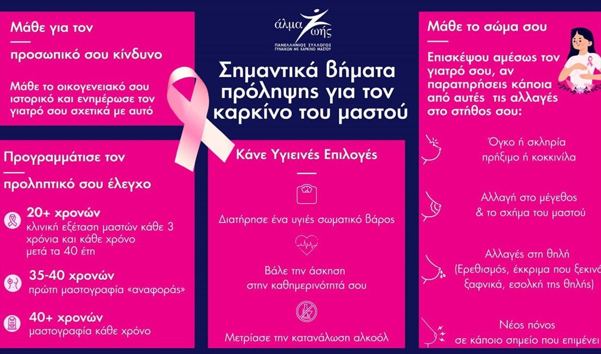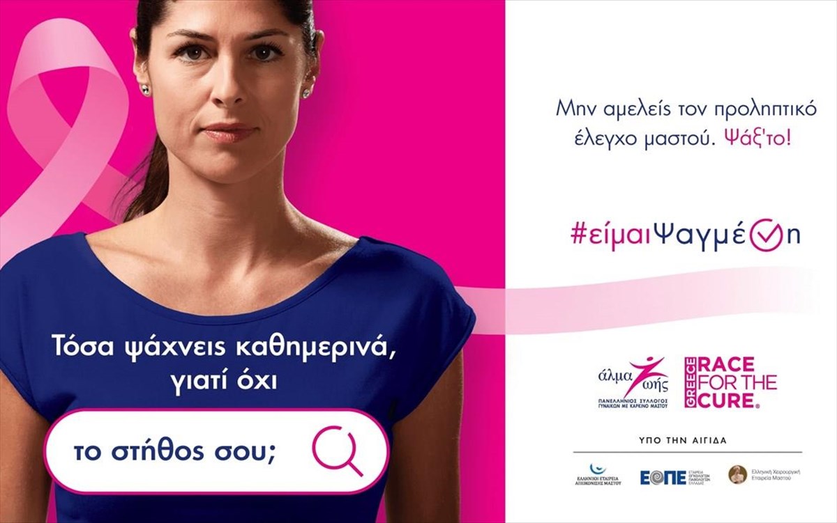 Ο Οκτώβριος είναι ένας πολύ σημαντικός μήνας για την υγεία της γυναίκας, καθώς είναι αφιερωμένος στην ενημέρωση και την ευαισθητοποίηση για τον καρκίνο του μαστού, με την 25η Οκτωβρίου να είναι η Παγκόσμια Ημέρα. Σε αυτό το πλαίσιο πραγματοποιείται η νέα εκστρατεία ενημέρωσης και ευαισθητοποίησης για τον καρκίνο του μαστού από τον Πανελλήνιο Σύλλογο Γυναικών με Καρκίνο Μαστού «Άλμα Ζωής» με τίτλο «#είμαιΨαγμένη», που αποτελεί ακόμα ένα εργαλείο που υπενθυμίζει σε κάθε γυναίκα πως, ανάμεσα στους δεκάδες μικρούς ή μεγάλους ελέγχους που καλείται να κάνει καθημερινά στη ζωή της, ο προληπτικός έλεγχος μαστού είναι αυτός που μπορεί να της σώσει τη ζωή.