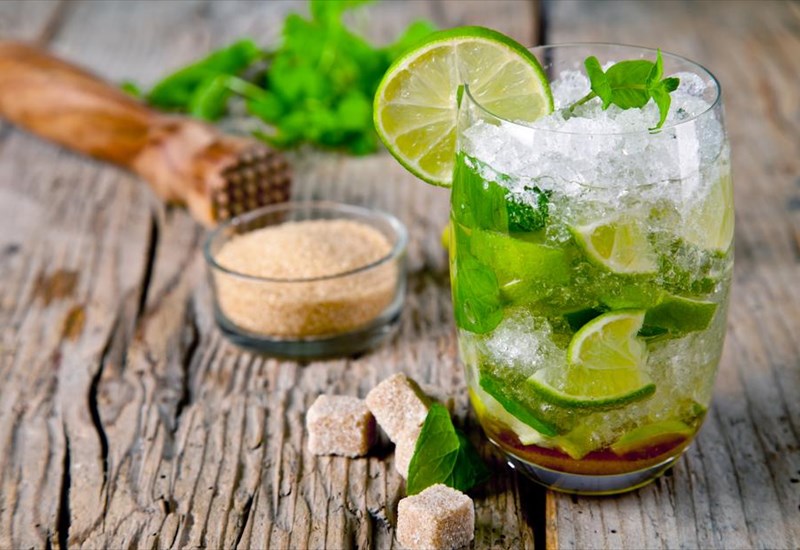Τι θα χρειαστείτε: μερικά φύλλα δυόσμου, 4 κουταλάκια του γλυκού μαύρη ζάχαρη, 1 lime, κομμένο σε 6 φέτες, 50 γραμμάρια ρούμι, παγάκια και μισό φλιτζάνι ανθρακούχο νερό.