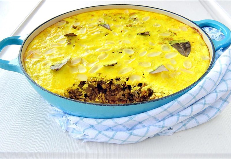 Τρυφερές λωρίδες μοσχαρίσιου κρέατος ψημένου, σερβιρισμένου επάνω σε μια μεγάλη μερίδα από noodles και πασπαλισμένου με φιστίκια και φρέσκα μυρωδικά.