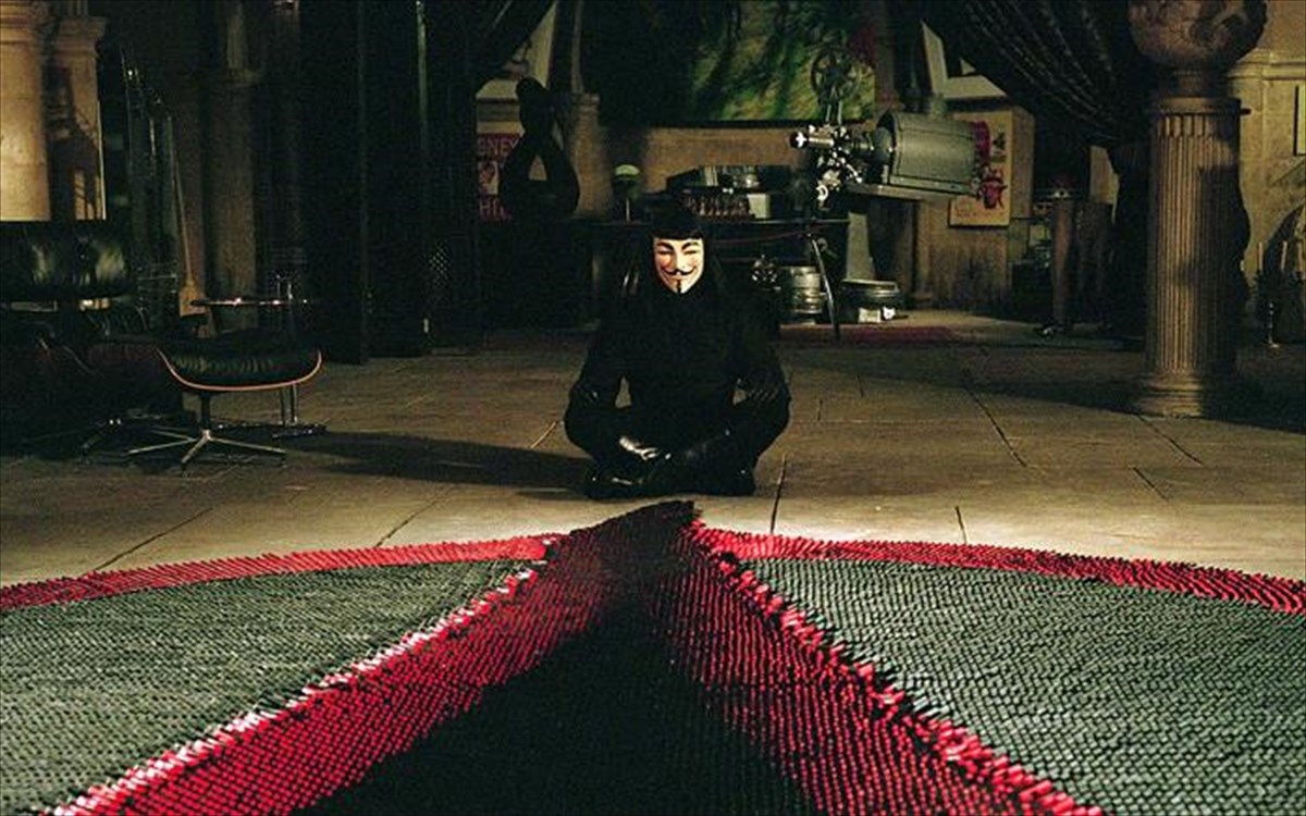 Στα πιο «γκούφικα» της ταινίας τώρα η σκηνή με τα κόκκινα και μαύρα ντόμινο που σχηματίζουν το γράμμα V, χρειάστηκε 22.000 ντόμινο για να δημιουργηθεί ενώ επιστρατεύτηκαν και δύο επαγγελματίες παίχτες ντόμινο, που δούλεψαν 200 ώρες για να κτίσουν το V.