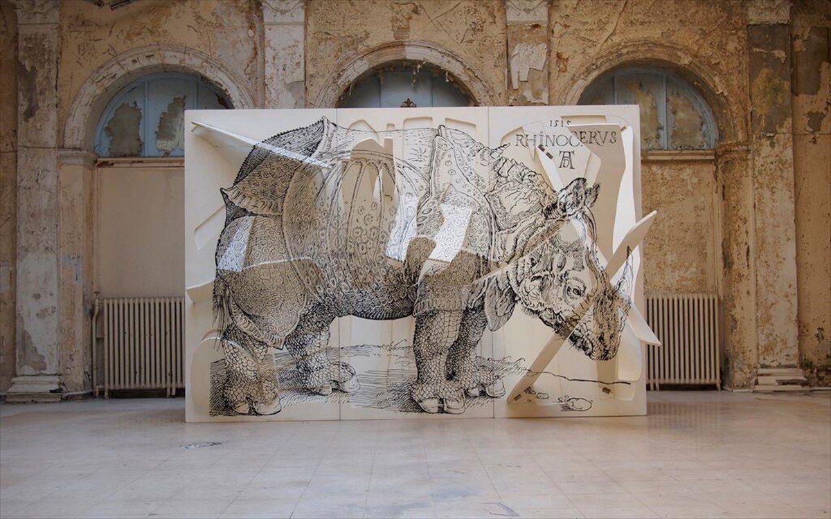 Στον Ρινόκερο προβάλλεται το εμβληματικό χαρακτικό του Albrecht Dürer –η απεικόνιση ενός ρινόκερου που ο χαράκτης δεν είχε στην πραγματικότητα δει ποτέ. Η ριζοσπαστική αυτή χειρονομία του Κεσσανλή αφενός προτείνει την αναθεώρηση των παραδοσιακών μέσων καλλιτεχνικής δημιουργίας και αφετέρου παραπέμπει στη δυνατότητα της τέχνης να πλάθει και να ανανοηματοδοτεί τη σύγχρονή της πραγματικότητα.