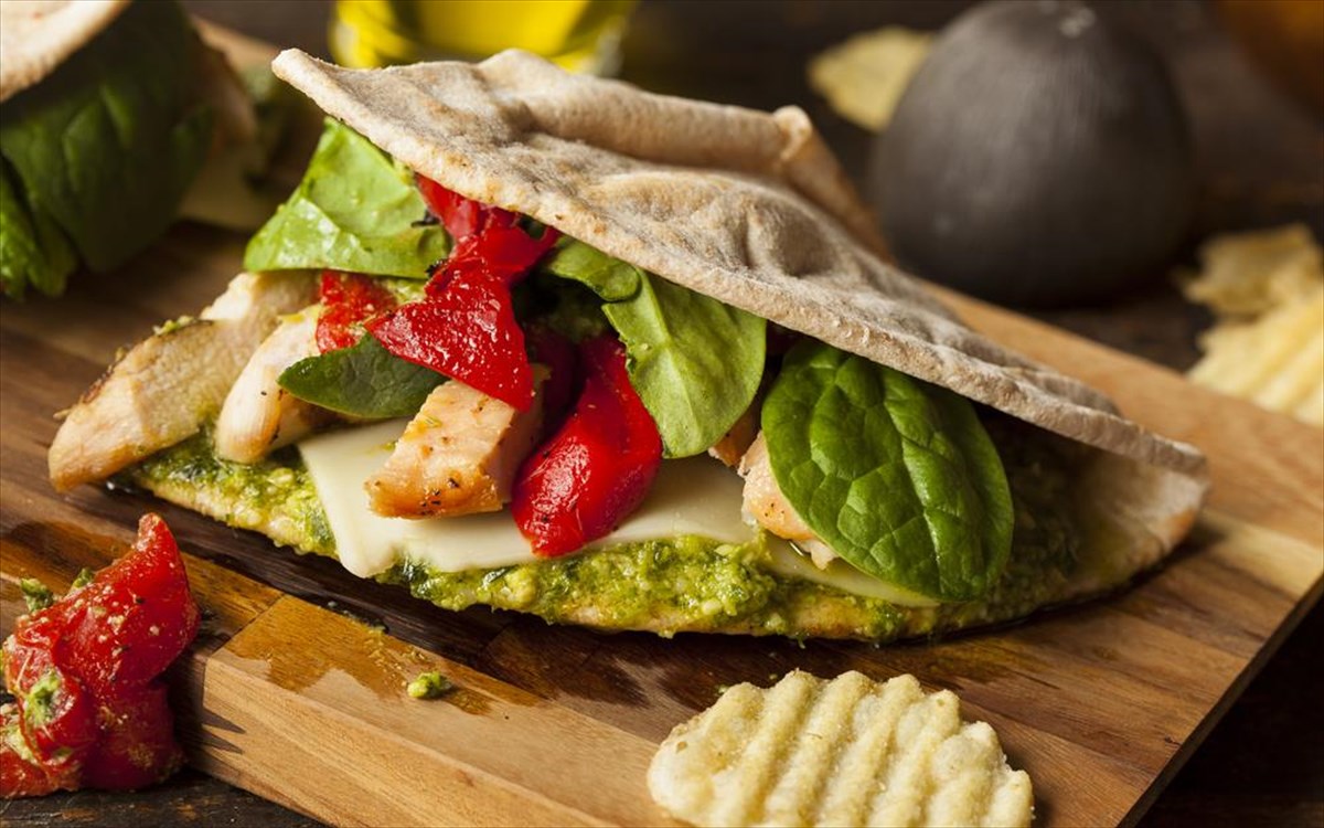 Φτιάξτε ένα διαφορετικό…πρασινωπό σάντουιτς αξιοποιώντας τον αρωματικό βασιλικό και τη ρόκα. Θα χρειαστείτε: 2 φλιτζάνια θρυμματισμένο στήθος κοτόπουλου, ¼ του φλιτζανιού ελληνικό γιαούρτι, αλάτι κοσέρ και φρεσκοτριμμένο μαύρο πιπέρι, 1 ψημένη μπαγκέτα κομμένη σε 3-4 ίσα μέρη, 2 φλιτζάνια ρόκα, 2 ντομάτες ρόμα κομμένες σε λεπτές φέτες, 200 γραμμάρια μοτσαρέλα σε φέτες. Για την σάλτσα πέστο βασιλικού: 1 φλιτζάνι φρέσκα φύλλα βασιλικού, 3 σκελίδες σκόρδο καθαρισμένο, 3 κουταλιές της σούπας σπόρους κουκουναριού, 1/3 του φλιτζανιού τριμμένη παρμεζάνα, αλάτι κοσέρ και φρεσκοτριμμένο πιπέρι, 1/3 του φλιτζανιού ελαιόλαδο. Εκτέλεση: Για να φτιάξετε τη σάλτσα πέστο, βάλτε βασιλικό, σκόρδο, κουκουνάρι και παρμεζάνα στο multi, πασπαλίστε αλάτι και πιπέρι και χτυπήστε τα. Όσο τα χτυπάτε, προσθέστε λίγο-λίγο και το ελαιόλαδο. Αφήστε το πηχτό μείγμα στην άκρη και σε ένα μεγάλο μπολ αναμείξτε το κοτόπουλο, ½ φλιτζάνι πέστο, το γιαούρτι, αλάτι και πιπέρι ανάλογα με τα γούστα. Γεμίστε με το μείγμα τη μπαγκέτα σας, μαζί με ρόκα, ντομάτα και μοτσαρέλα.