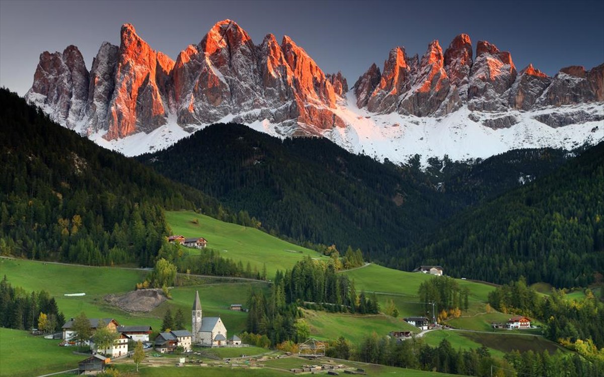 Στα βορειοανατολικά της γειτονικής μας χώρας, οι Δολομίτες αποτελούν μια οροσειρά τμήμα των Άλπεων, η οποία ξεχωρίζει τόσο για το τοπίο που σχηματίζει, όσο και για τα… χρώματά της. Το όνομα «Δολομίτες» προέρχεται από τον δολομίτη, έναν τύπο πετρώματος που απέδωσε τα χαρακτηριστικά σχήματα και χρώματα αυτών των βουνών, τα οποία, μάλιστα, παλαιότερα ονομάζονταν «χλωμά βουνά». Το χρώμα τους είναι κυρίως λευκό, το οποίο αλλάζει αποχρώσεις κατά τη διάρκεια της ημέρας και της νύχτας. Το χάραμα παίρνουν μια πορτοκαλί απόχρωση, το απόγευμα γίνονται μοβ και ροζ και το βράδυ αποκτούν μια φυσική λάμψη, που μόνο αν τη δει κάποιος την πιστεύει.