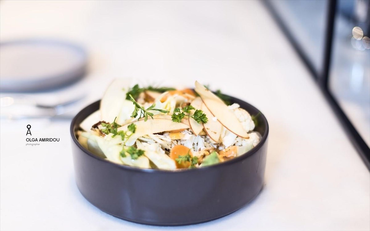 Από σαλάτα, δοκιμάσαμε το best seller του Nolan, τη σαλάτα με… καμένα λάχανα και κουνουπίδια, με ξερό ανθότυρο Μπαμπούνη (8,5 ευρώ). Αυτό που μας εντυπωσίασε γευστικά δεν ήταν τα «τσουρουφλισμένα» λαχανικά, αλλά ο συνδυασμός του λαδιού τρούφας και του ιδιαίτερου παλαιωμένου ανθότυρου, με τη γλυκύτητα του μήλου και τα καπνισμένα καρύδια.