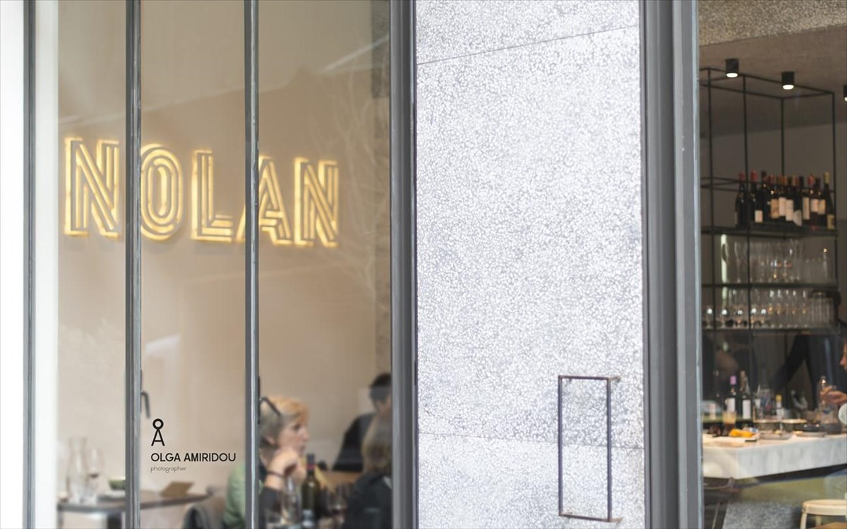 Ανοίγοντας τη βαριά και ψηλή πόρτα του, νιώθεις ότι μπαίνεις σε ένα χώρο που βγάζει μια καθαρότητα, που συνδυάζει το απλό και το κομψό, το επίσημο, αλλά ταυτόχρονα και το παρεΐστικο, αφού δεν υπάρχει ορεκτικό και κυρίως, καθώς τα πιάτα καταφτάνουν με μια λογική μοιράσματος ανάμεσα στους συνδαιτυμόνες. Πίσω από την πόρτα –και την ιδέα- του Nolan συναντήσαμε τον Κώστα Πισιώτη, τον ιδιοκτήτη του, ο οποίος μετά το ΠBOX της Κηφισιάς, κατάφερε να στήσει ένα χώρο, με τη βοήθεια του αρχιτέκτονα Μάνου Μπαμπούνη και της ομάδας UCS, που παραπέμπει σε κάτι γνώριμο. Σε αυτό, βέβαια, βοηθάει και ο ίδιος, με την αμεσότητα που φροντίζει να διατηρεί με τον κόσμο που το επισκέπτεται, που σε κάποια φάση του γεύματος θα εισπράξει τουλάχιστον ένα χαμόγελο.