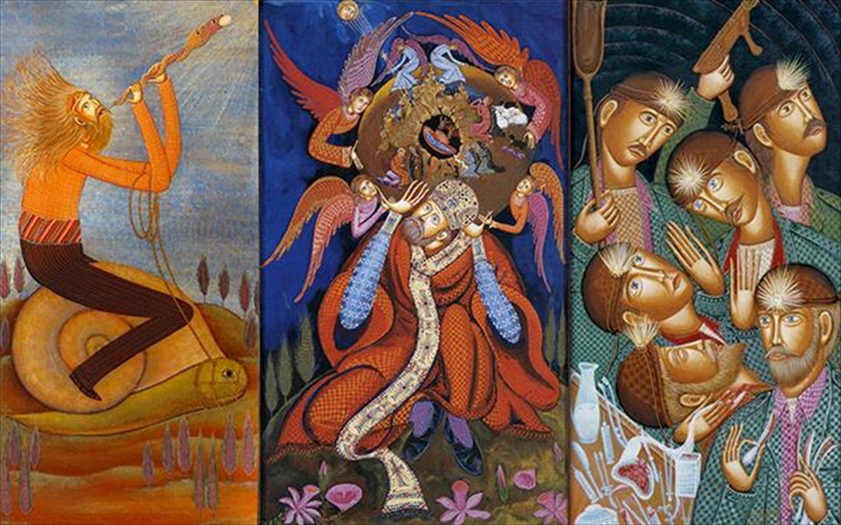 Ορφέας ο μέγας μύστης σαλιγκοκαβαλάρης (Ποίηση: 2010 χρώματα αυγού σε καμβά 263x138 εκ.).