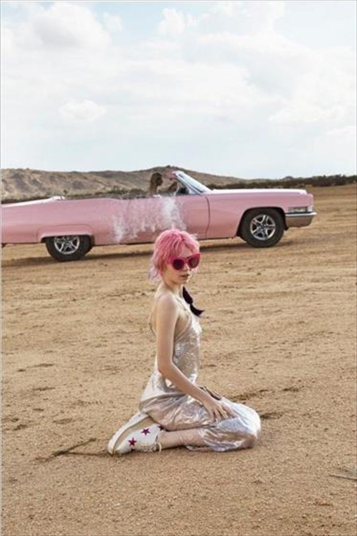 Πριν από λίγες μέρες κυκλοφόρησε μάλιστα το διαφημιστικό πόστερ, στο οποίο βλέπουμε τη Grimes -κατά κόσμον Claire Boucher- καθιστή σε ένα σκηνικό ερήμου και ντυμένη με ένα «λαμέ» φόρεμα. Το ροζ χρώμα κυριαρχεί στο πόστερ (ροζ μαλλιά, ροζ γυαλιά και ένα ροζ vintage αυτοκίνητο στο φόντο) προϊδεάζοντάς μας ίσως για τη γλυκιά (πλην πικάντικη) οσμή του POP;
