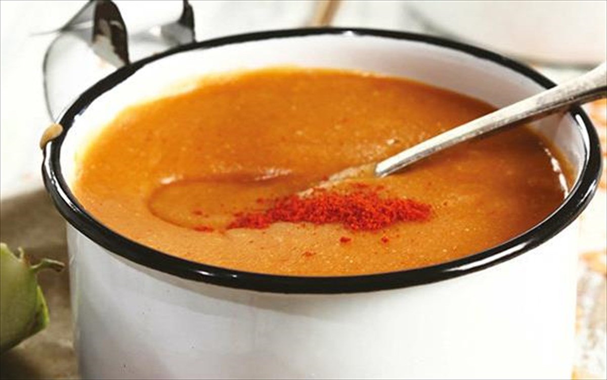 Για το σερβίρισμα, μοιράζουμε τη ζεστή βελούδινη σούπα σε βαθιά πιάτα ή σε μπολάκια και σε κάθε μερίδα ρίχνουμε λίγη επιπλέον πάπρικα.