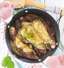 Βαρκάκια μελιτζάνας με κιμά μανιταριών