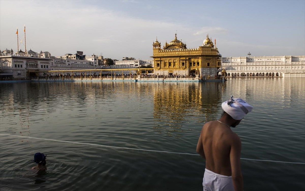 Πιστοί Σιχ βουτάνε στα ιερά νερά του Χρυσού ναού (Golden temple) στο Amritsar.