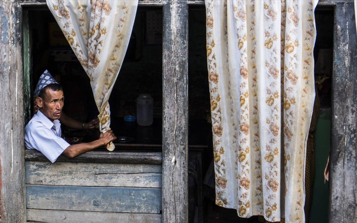 Kathmandu.Νεπάλ. Κοιτάζοντας τον δρόμο μέσα από ένα μαγειρείο στην πρωτεύουσα της χώρας.