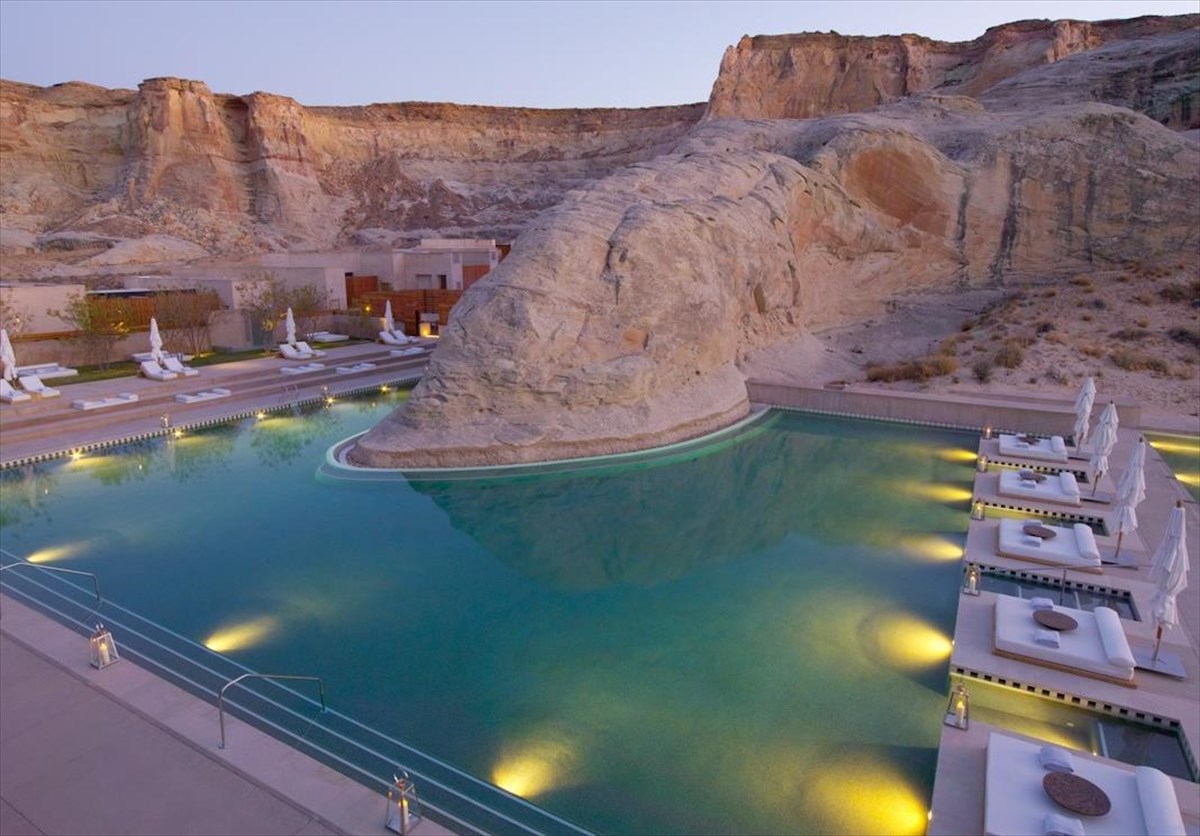 Στην καρδιά της ερήμου, το θέρετρο αυτό εναρμονίζεται με το φυσικό τοπίο, καθώς έχει χτιστεί με ασυνήθιστα υλικά και σε αποχρώσεις που ταιριάζουν με την άμμο. Είναι υπερπολυτελές, διαθέτει τεράστια πισίνα, βιβλιοθήκη, τραπεζαρία και κελάρι. Και κάπως έτσι, η διαμονή στη έρημο γίνεται εύκολη. https://www.aman.com/resorts/amangiri