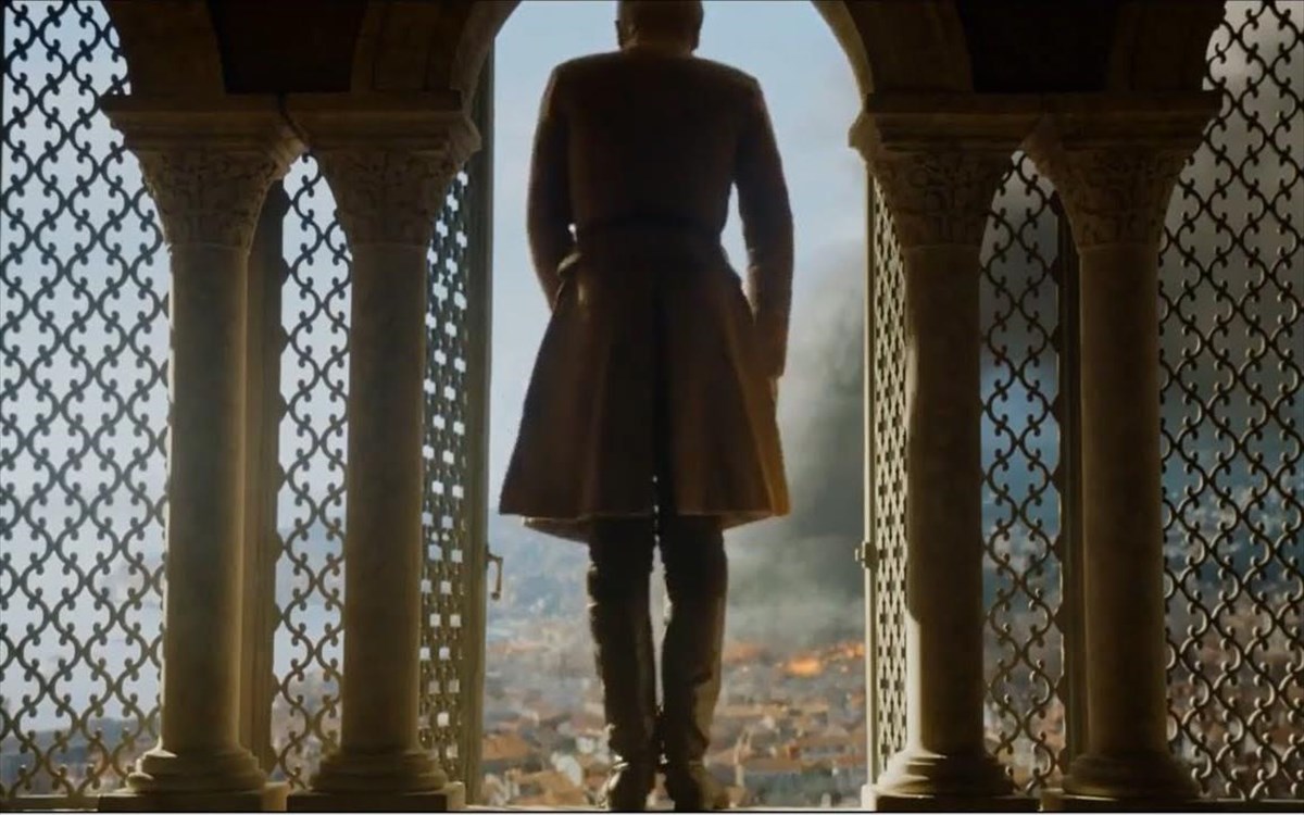 Και ενώ κάπου εκεί θα νόμιζε κανείς πως αυτό είναι ένα γερό θανατικό για το φινάλε και δε θα έχει άλλο στη συνέχεια, ο Τόμεν είναι αυτός που όταν μαθαίνει για το θάνατο της Μάρτζερι και του αδερφού της αφήνει το στέμμα και αυτοκτονεί, πηδώντας από το παράθυρο του πύργου του. Μπορεί η Μάρτζερι να τον παντρεύτηκε λόγω στρατηγικής και ποτέ να μην ένιωσε κάτι για αυτόν, ο ίδιος πάντως ως άβγαλτος πρωτάρης δε δυσκολεύτηκε να κολλήσει μαζί της και δεν μπορούσε να δεχτεί ούτε το χαμό της μα ούτε και το γεγονός ότι για το θάνατό της ευθύνεται η ίδια του η μητέρα, για την οποία έκανε τα πάντα ώστε να τη θεωρεί ευτυχισμένη. Ήταν σίγουρα ο πιο αθώος και συμπαθής από τους Λάνιστερ και είχε το πιο τραγικό τέλος από τα αδέρφια του. Το πρώτο εικοσάλεπτο του επεισοδίου το βάζουμε στα ίδια επίπεδα της μάχης του Γουίντερφελ και της επέλασης των δράκων στην Μερίν, αφού χτίζει με απίστευτη ένταση τη μεγάλη έκρηξη και το θάνατο πολλών βασικών χαρακτήρων και σε επίπεδο περιεχομένου και διαδρομής των κεντρικών ηρώων της ιστορίας θυμίζει κάλλιστα αρχαία τραγωδία του Αισχύλου και δεν υπερβάλλουμε καθόλου σε αυτό.