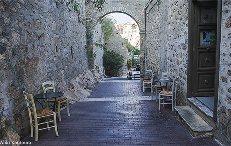 Αφού χορτάσαμε θέα και φωτογραφικά κλικς, μια στάση στα «Αστέρια» κρίθηκε απαραίτητη. Κατηφορίζοντας για το beach-bar κατατεθέν του νησιού, το μάτι χορταίνει εικόνες νοσταλγίας, από εκείνες στις οποίες η σέπια θα ήταν το ιδανικό φίλτρο του φωτογραφικού κάδρου. Ζευγάρια που κάνουν προμενάδα χέρι-χέρι δίπλα στο κύμα, ηλικιωμένοι που αράζουν σε πλαστικές καρέκλες, παιδιά (αλλά και μεγάλοι) που παίζουν και κάνουν ξένοιαστες βουτιές από τις τσιμεντένιες προβλήτες είναι μερικά απ’ όσα θα δεις στο δρόμο προς τη ραστώνη.