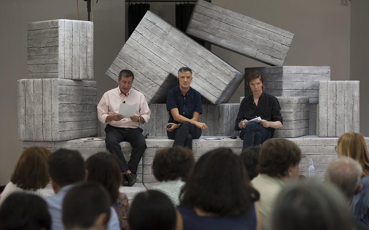 Από αριστερά: Δήμαρχος Αθηναίων Γιώργος Καμίνης, Paul B. Preciado, επιμελητής Προγράμματος Δημοσίων Δράσεων documenta 14, Adam Szymczyk, Καλλιτεχνικός Διευθυντής της documenta 14.