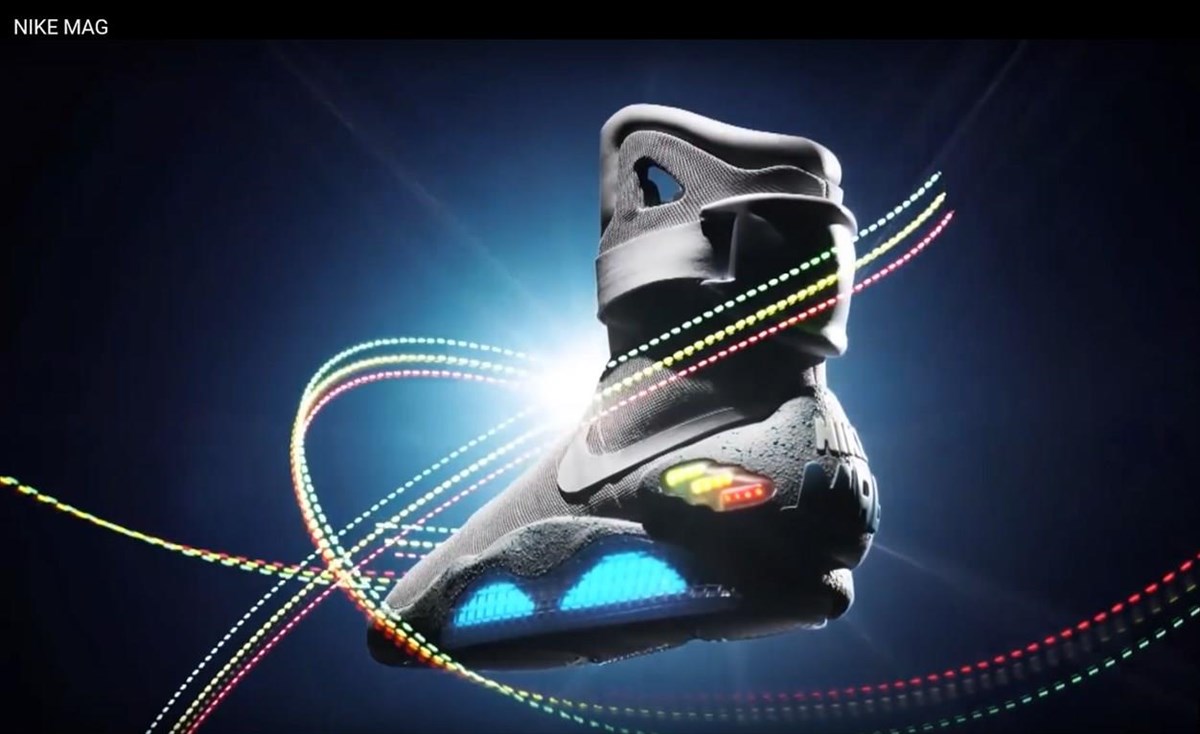 Τα παπούτσια με κορδόνια που δένονται αυτόματα και που φόραγε ο Μάρτι ΜακΦλάι στην πρώτη συνέχεια της «Επιστροφής στο Μέλλον» είναι πλέον γεγονός, αφού η Nike ανακοίνωσε ότι θα τα βγάλει στην αγορά. Τα Nike Mags, όπως λέγονται, βγαίνουν σε συνεργασία με το ίδρυμα του Μάικλ Τζ. Φοξ, πρωταγωνιστή στις ταινίες της σειράς, με στόχο να βρεθεί θεραπεία για τη νόσο του Πάρκινσον.