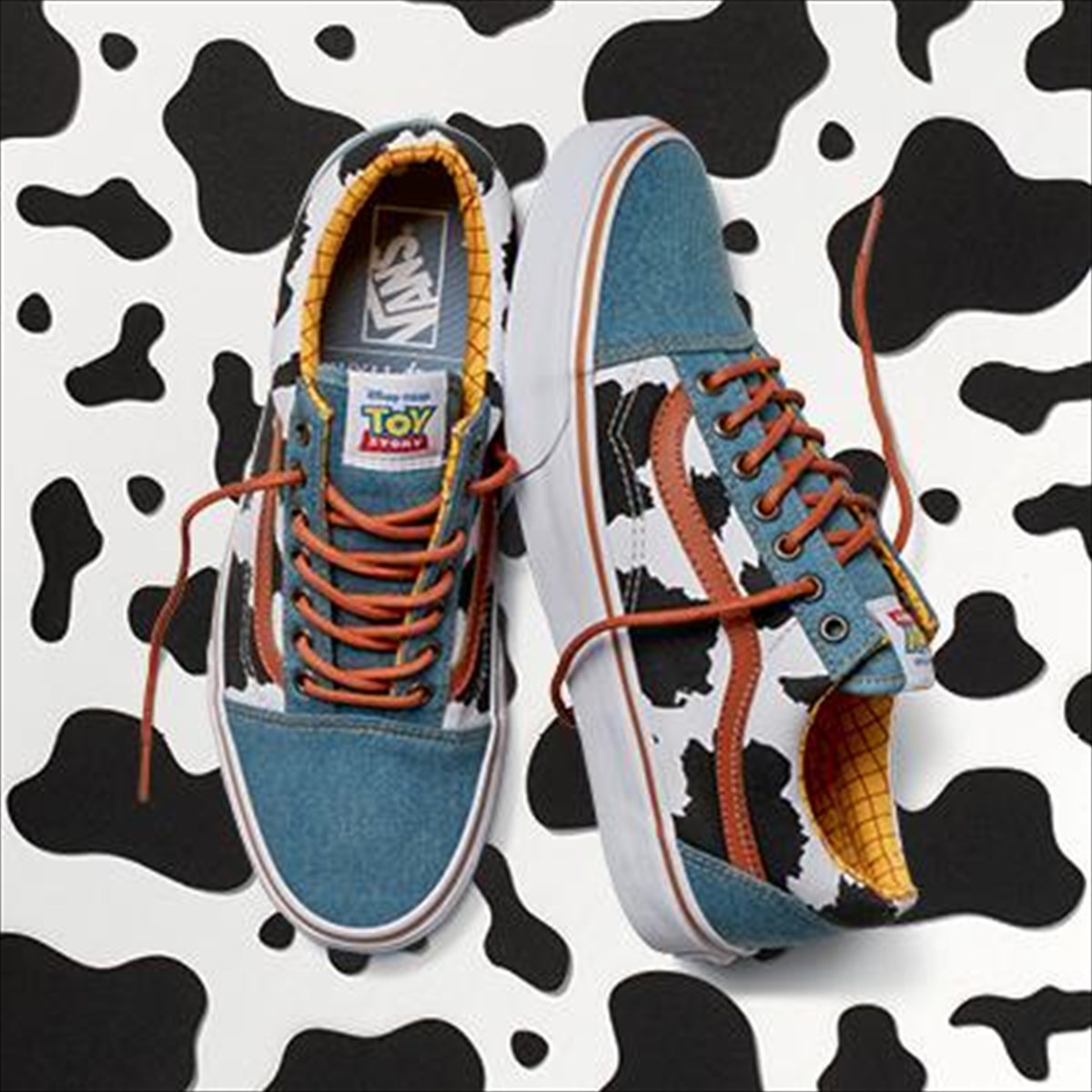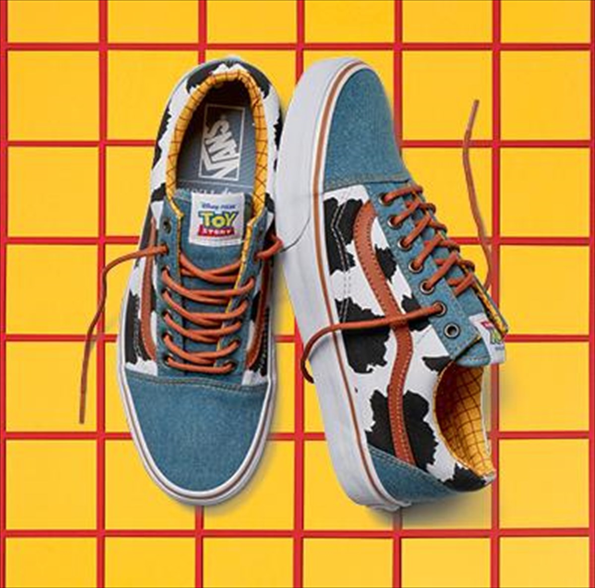 Το Sk8-Hi Reissue PT μεταμορφώνει τις χαρακτηριστικές καουμπόικες μπότες του Woody σε δερμάτινα hi-top, με κεντημένη τη λεπτομέρεια του κάκτου.  Το Old Skool ανανεώνεται με denim και σχέδια αγελάδας στα πλαϊνά και τελείωμα με καφέ δερμάτινη πλαϊνή γραμμή.