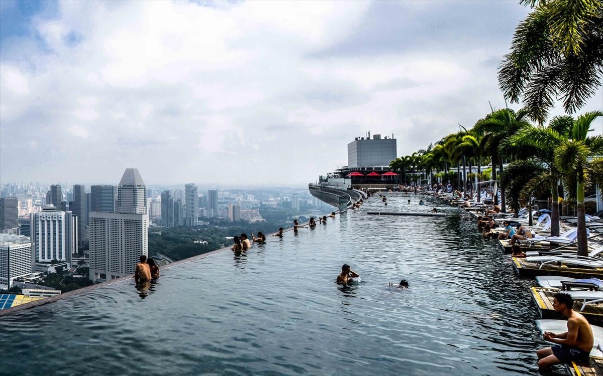 marinabaysands.comΌσοι φοβούνται τα ύψη σίγουρα δεν θα περάσουν καλά σε αυτή την πισίνα. Οι υπόλοιποι, όμως, θα αισθανθούν σαν να κολυμπούν στον ουρανό.