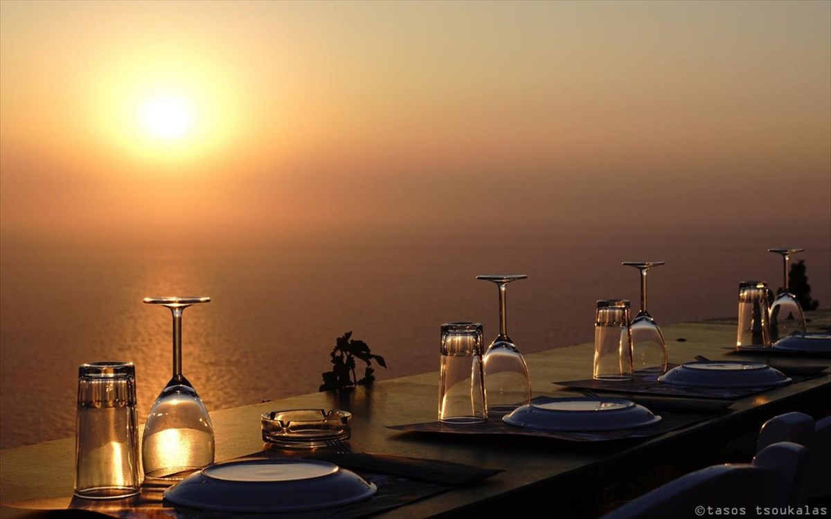Η θέα από το οινοποιείο Μάναλη στη Σίκινο, που άνοιξε από τον Ιούλιο του 2008. Μετά τη Δύση του ήλιου, πραγματοποιεί καθημερινά ξενάγηση στην κάβα του οινοποιείου και παρουσίαση φωτογραφικού υλικού όλης της διαδικασίας παραγωγής.