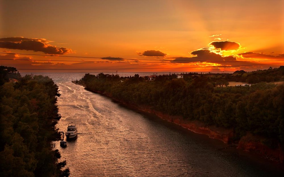 Χρώματα ηλιοβασιλέματος από το Κανάλι της Νέας Ποτίδαιας στην Κασσάνδρα της Χαλκιδικής
