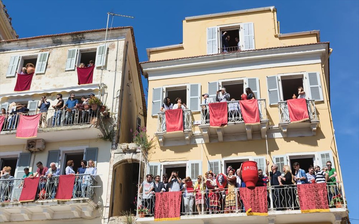 Ελληνικό Πάσχα στην Κέρκυρα, με τις Κερκυραίες να ετοιμάζονται να πετάξουν το κανάτι από το μπαλκόνι τους το πρωί του Μεγάλου Σαββάτου, για τον εορτασμό της Ανάστασης του Ιησού, όπως προστάζει το έθιμο.