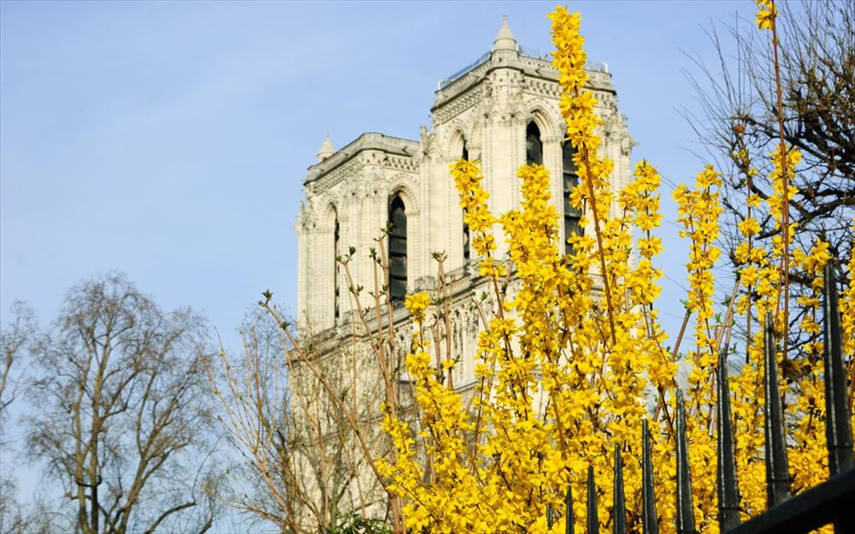 Η Παναγιά των Παρισίων με πασχαλινό φόντο, πριν την τελευταία πυρκαγιά που κατέστρεψε αυτό το μνημείο-ορόσημο.