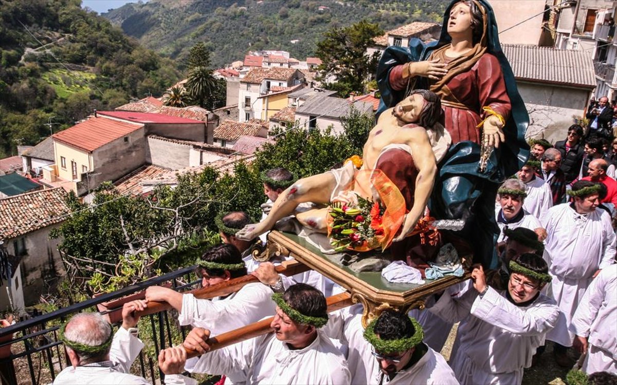 Η λιτανεία της Madonna Addolorata και του νεκρού Ιησού στη Nocera Terinese, Calabria, στη Νότια Ιταλία.