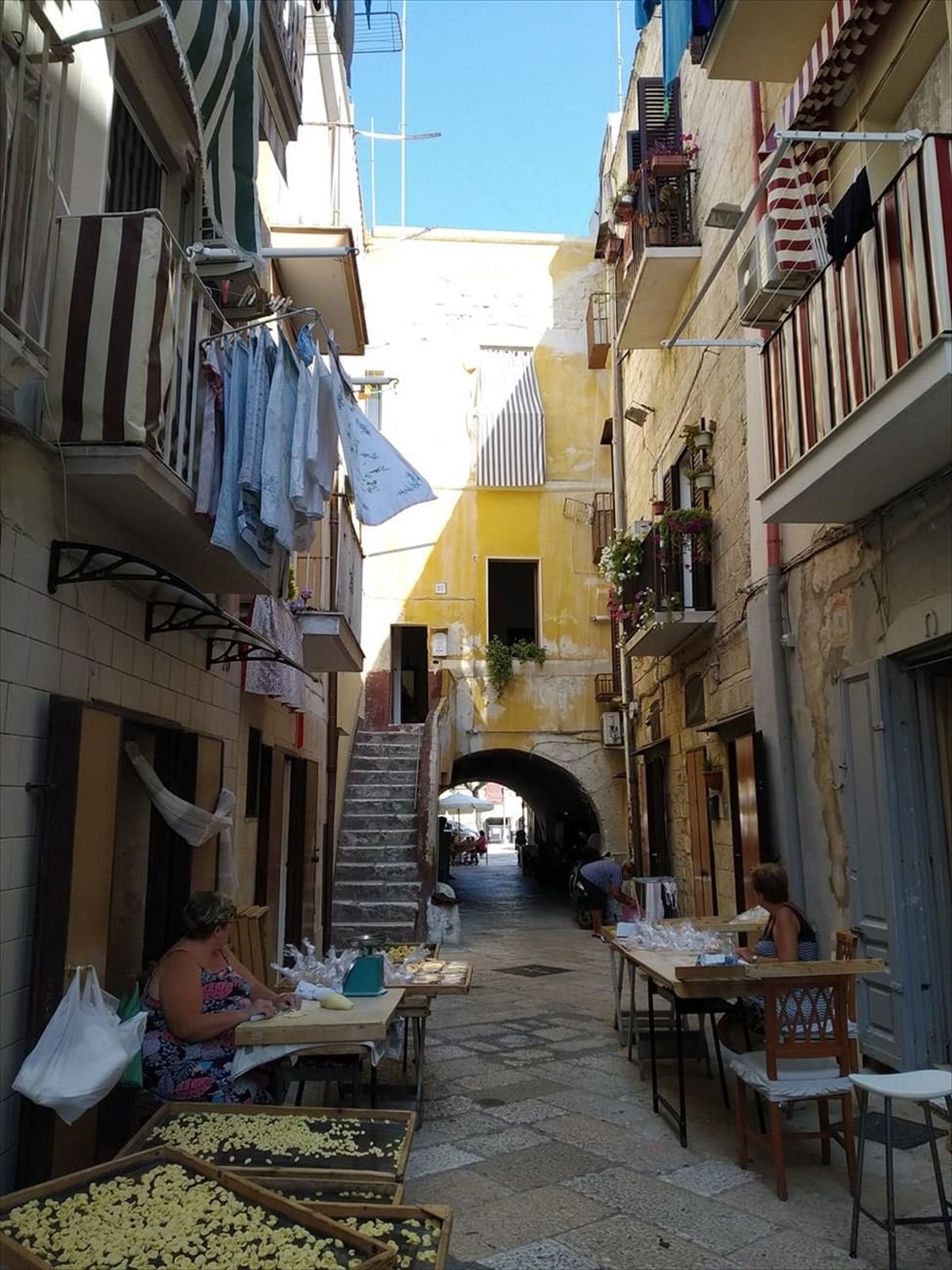 clickatlife / Βαρδαλαχάκη ΙωάνναΑυτό που την κάνει να ξεχωρίζει είναι η συνοικία Bari Vecchia, ένα σύμπλεγμα από εξαιρετικά στενά δρομάκια με χαμηλά σπίτια που σου δίνουν την εντύπωση ότι το ένα είναι πάνω στο άλλο και ότι από την πόλη μεταφέρθηκες μαγικά στο χωριό και στην αθωότητα μιας εποχής που αν και έχει περάσει τη θυμόμαστε ακόμα. Στα εντελώς καλοφτιαγμένα στενάκια θα βρεις ανοιχτές πόρτες, παιδάκια να παίζουν, μπουγάδες ,οικογένειες να μαγειρεύουν, και άλλες μπουγάδες, (κακόγουστες) παναγίες, λουλούδια και το σήμα κατατεθέν της πόλης, τις γιαγιάδες στο δρόμο Arco Alto να φτιάχνουν τα ζυμαρικά της περιοχής (orecchiette).