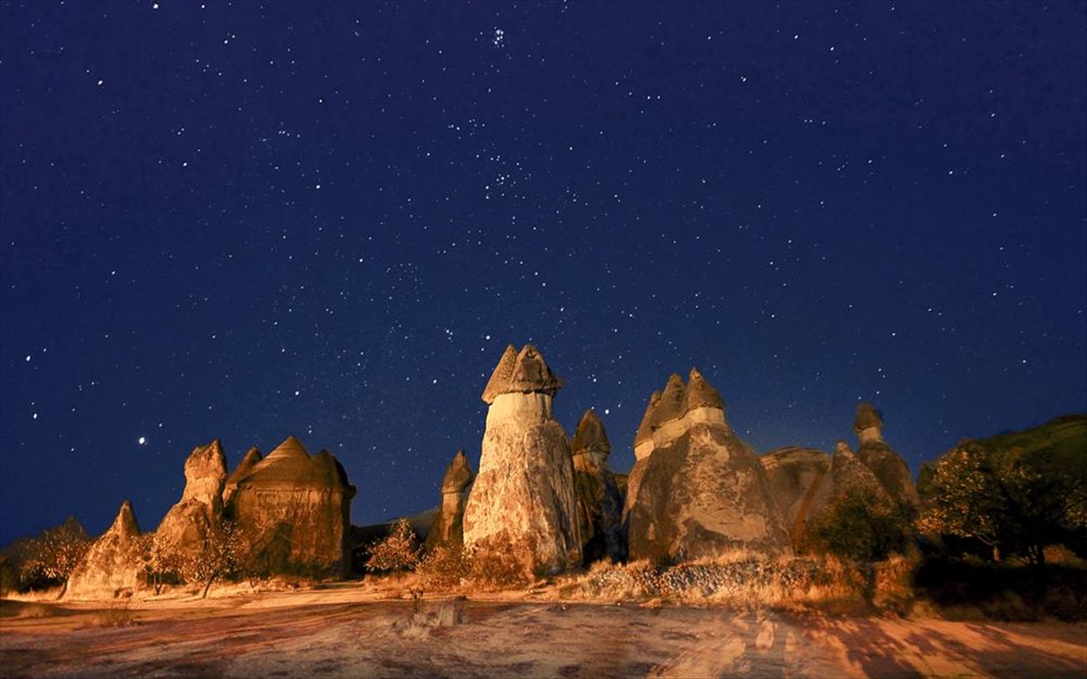 Οι καμινάδες αυτές είναι ένα ιδιαίτερα θαυμαστό δημιούργημα της φύσης που βρίσκεται στην Καππαδοκία, ανάμεσα στις πόλεις Ουργκιούπ, Ουτσχισάρ και Αβανος. Πρόκειται για περίτεχνους κωνικούς πυργοειδείς βράχους, ύψους μέχρι και 40 μέτρων, που θυμίζουν καμινάδες με ένα «καπέλο» από βασάλτη στην κορυφή τους. Σχηματίστηκαν από τη διάβρωση των ηφαιστειογενών πετρωμάτων της περιοχής, από τη βροχή και τα φυσικά φαινόμενα στη διάρκεια των αιώνων κατά την 4η Γεωλογική Περίοδο και είναι απροστάτευτες καθώς η φθορά τους από τα φυσικά φαινόμενα συνεχίζεται. Εδώ τις βλέπουμε κάτω από τον έναστρο ουρανό.
