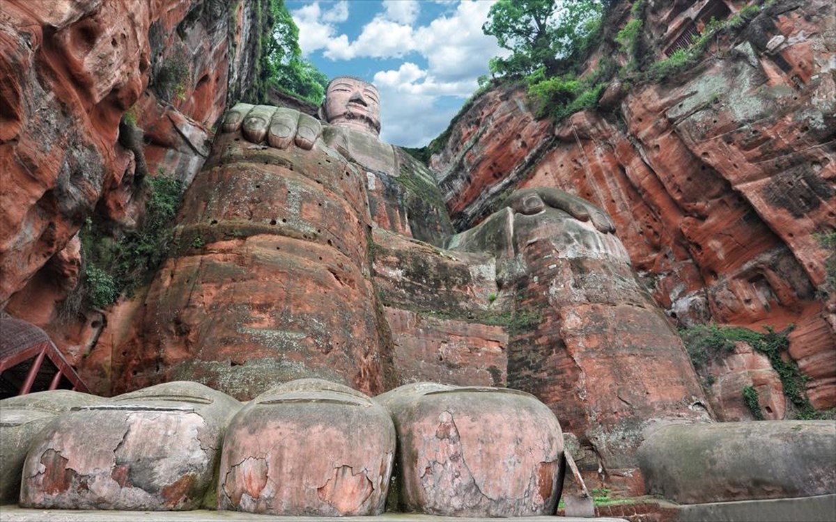 μνημεία παγκόσμιας κληρονομιάς της Unesco το 1996. Το άγαλμα αυτό ήταν ιδέα ενός κινέζου μοναχού, του Haitong, ο οποίος πίστευε ότι η παρουσία ενός πέτρινου Βούδα θα ηρεμούσε τα νερά των ποταμών. Όταν τα χρήματα τελείωσαν, ο Haitong αυτοκτόνησε, η κυβέρνηση, όμως, αποφάσισε να το ολοκληρώσει.