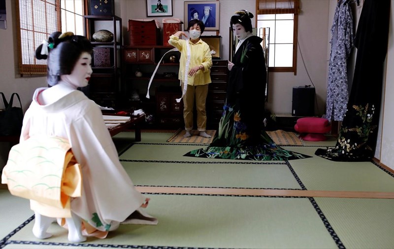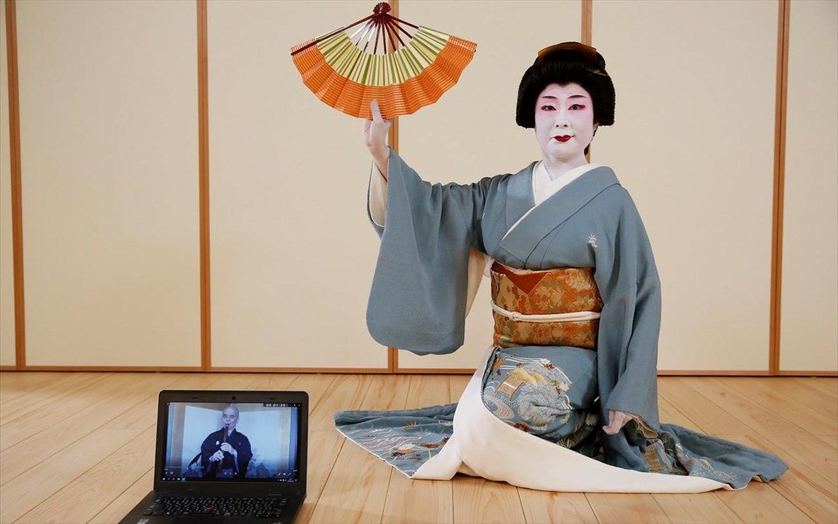 REUTERS / KIM KYUNG-HOONΟι γκέισες όμως δεν είναι το μοναδικό καλλιτεχνικό επάγγελμα που κινδυνεύει στην Ιαπωνία. Οι περφόρμερ του «jiutamai», ενός αρχαίου γυναικείου χορού, οι οποίες είναι βαμμένες και ντυμένες με περούκες και κιμονό, ανησυχούν επίσης για την επίδραση που θα έχει η υγειονομική κρίση στο επάγγελμά τους.