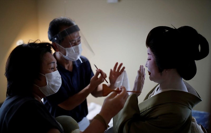 «Κάθε μέρα ακυρώνονται εκδηλώσεις στις οποίες θα συμμετείχα» εκμυστηρεύεται η Mitsunaga Kanda, η οποία για δεκαετίες μακιγιάρει γκέισες και χορεύτριες. «Αγγίζουμε το δέρμα και το πρόσωπό τους, βασικά τους αγγίζουμε παντού, και ενώ δεν μιλάμε είμαστε πολύ κοντά, κάτι που γνωρίζουμε τώρα πολύ καλά» συνεχίζει η Kanda.