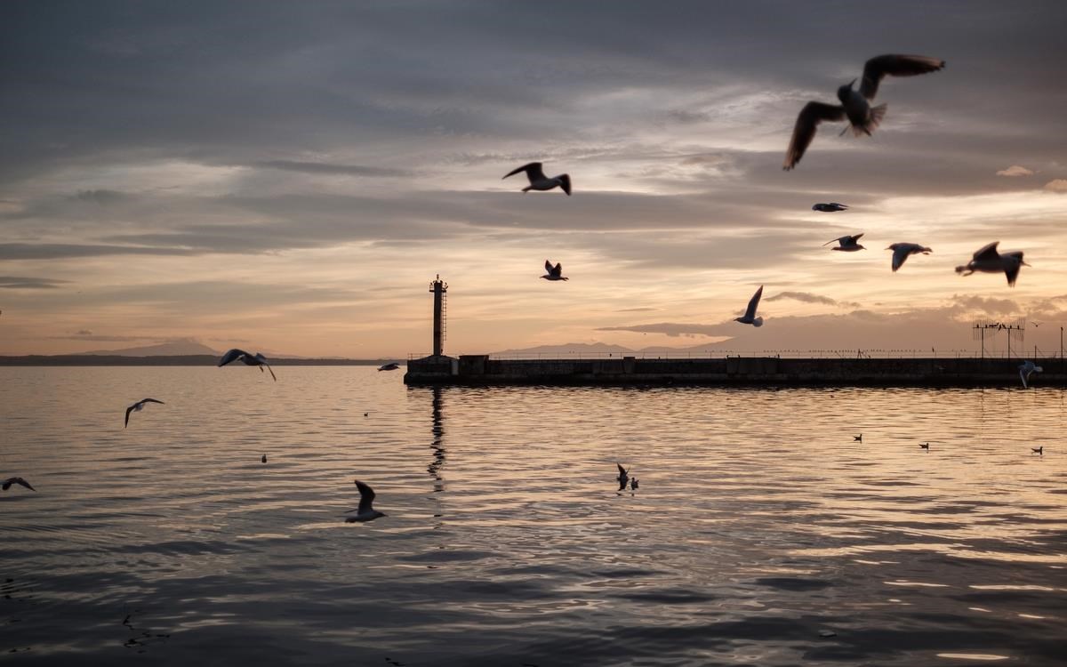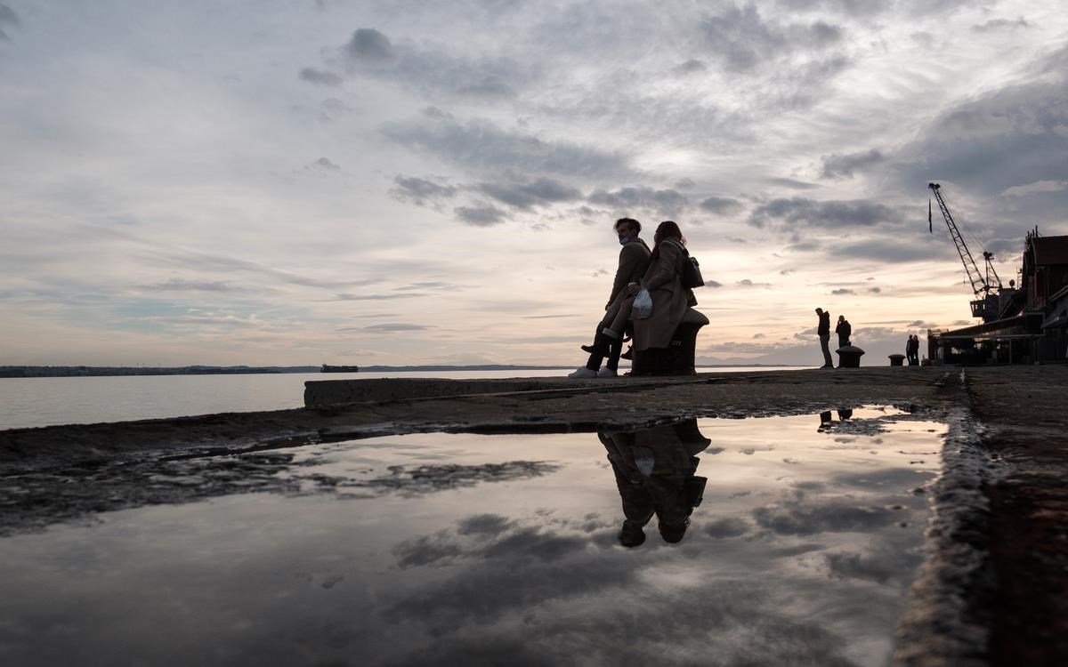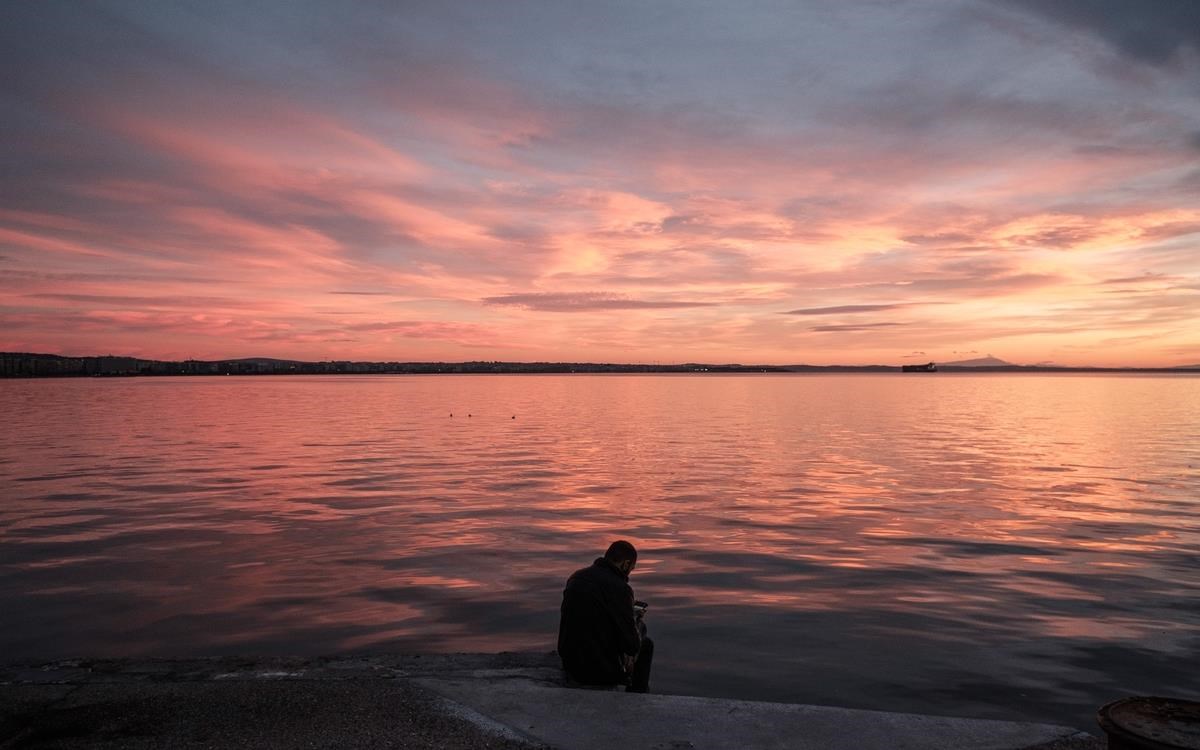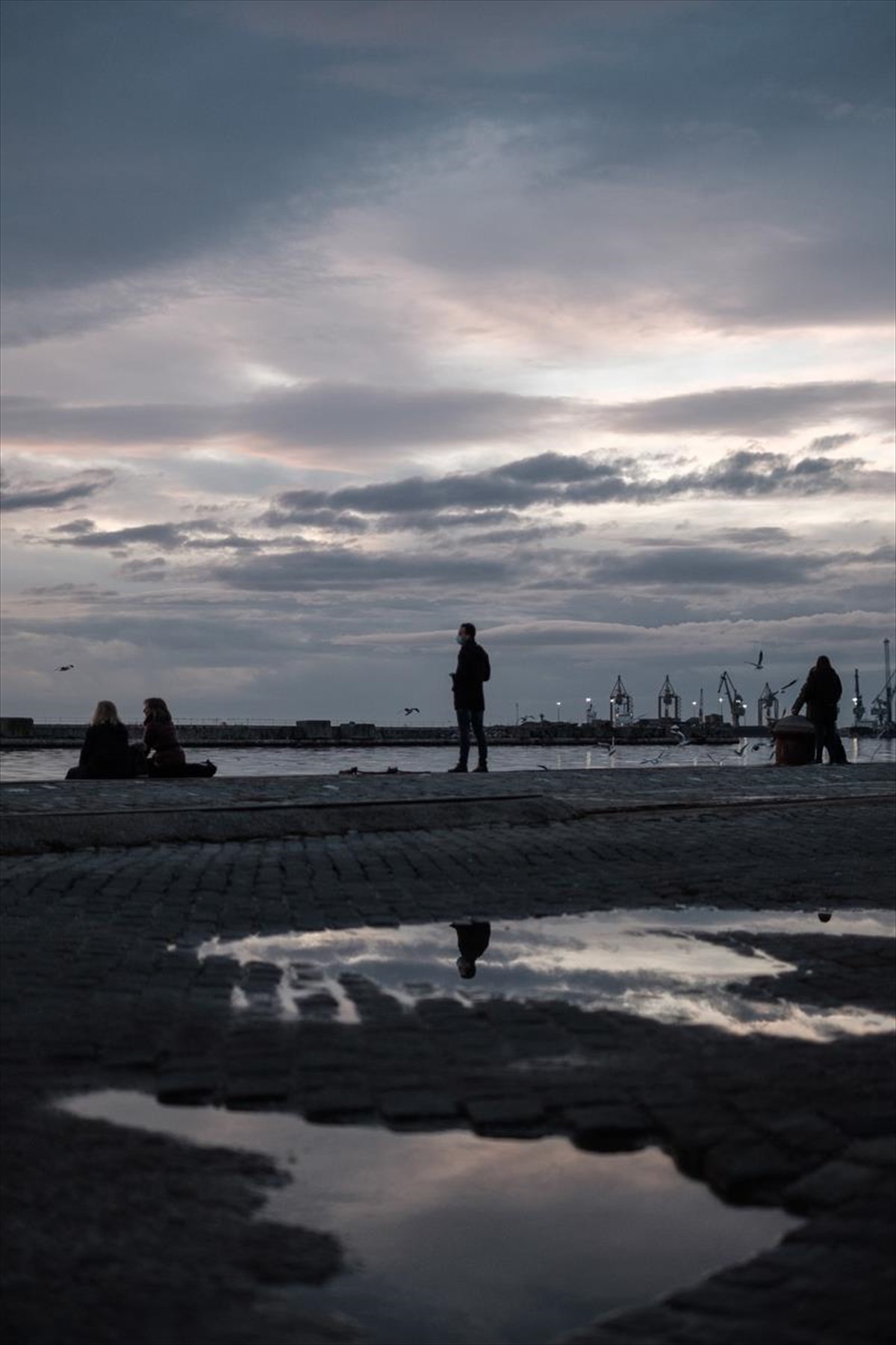 Μια χειμωνιάτικη ημέρα σαν αυτή, το λιμάνι της Θεσσαλονίκης υποδέχτηκε και πάλι τους κατοίκους της, την ώρα που ο ήλιος έδυε, για να τους δώσει κουράγιο και να τους ξεκουράσει από τα άγχη της ημέρας, της εποχής. Ο Κωνσταντίνος Τσακαλίδης κατέγραψε την ατμόρφαιρα με τον φωτογραφικό του φακό, κι εμείς μπορούμε να την απολαύσουμε χωρίς μάσκα.
