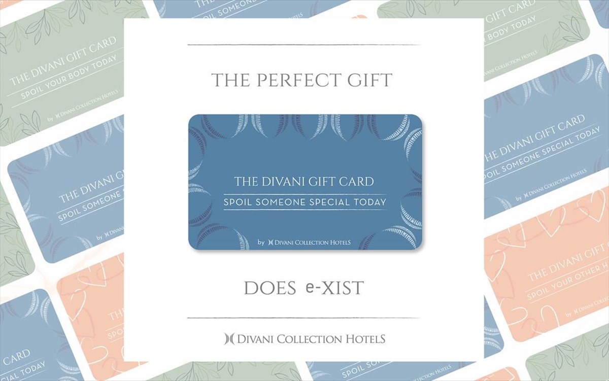 Οι ηλεκτρονικές gift cards σας δίνουν τη δυνατότητα να κάνετε δώρο μια εμπειρία των Divani Collection Hotels, όπως ένα χαλαρωτικό μασάζ στο Divani Athens Spa & Thalasso Center, μια γαστρονομική εμπειρία σε ένα από τα εστιατόρια, μια διαμονή στις πολυτελείς σουίτες ή στα μοντέρνα δωμάτια που διαθέτει ο Όμιλος και πολλές ακόμη επιλογές.