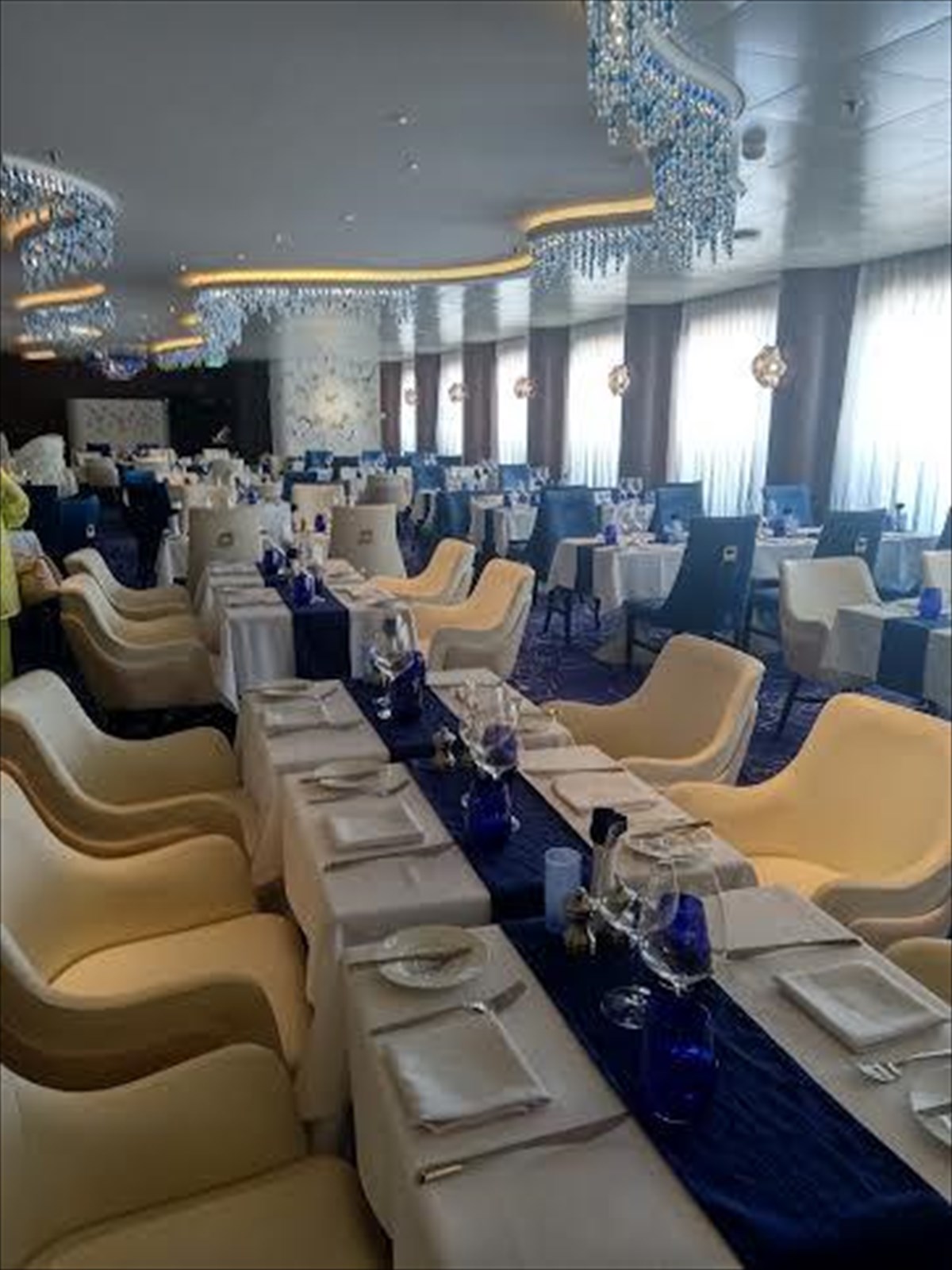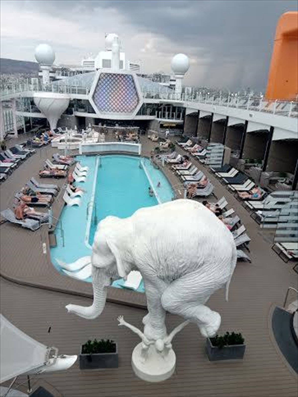 • To εκπληκτικό, πολυεπίπεδο Sunset Bar, που χαρακτηρίζει το πρυμναίο μέρος του πλοίου, σχεδιασμένο από τον Αμερικανό σχεδιαστή Nate Berkus