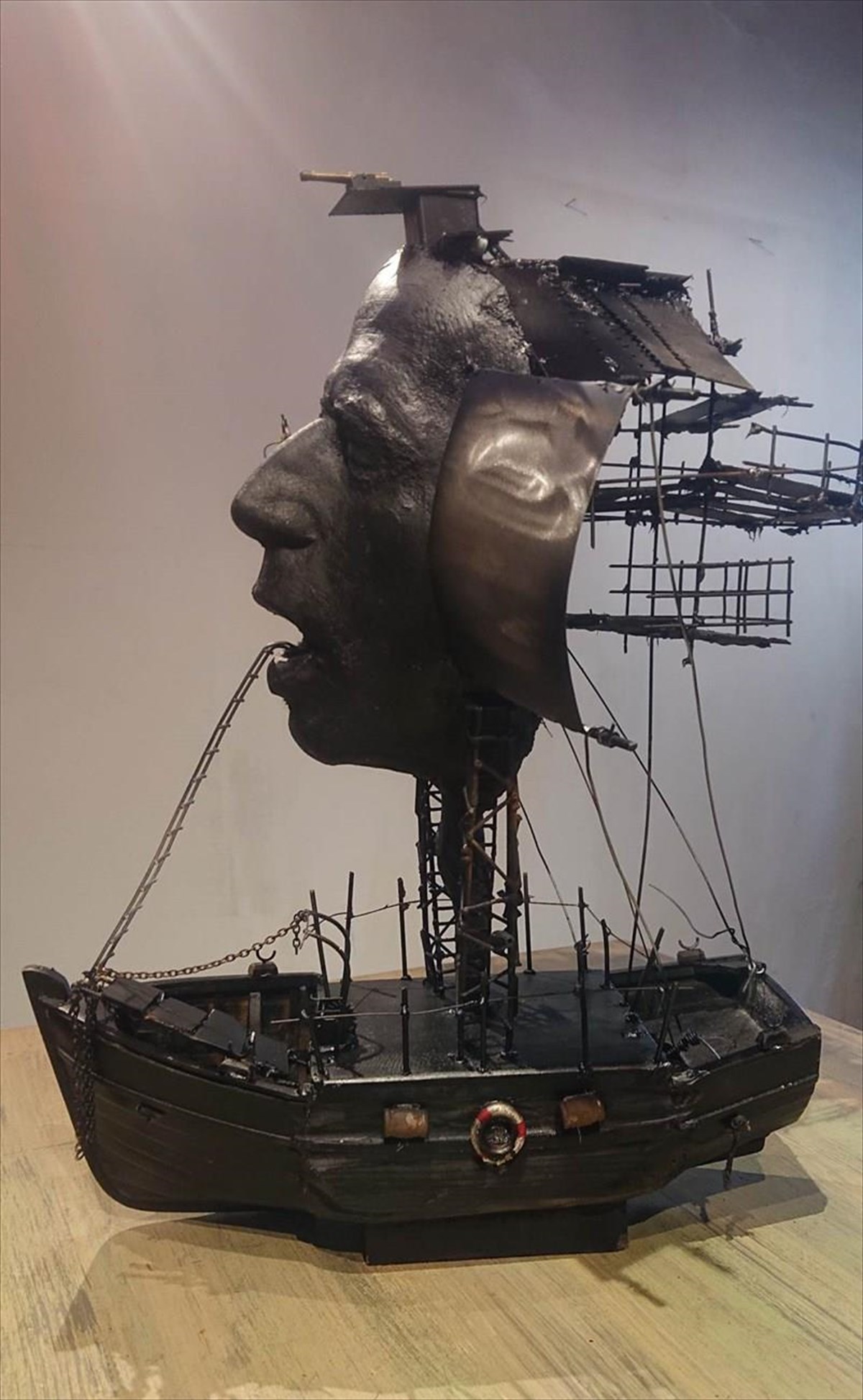 Katerina LiaptsiouΙδανικό πρωτογενές επίκεντρο παρουσίασής της, αποτελεί το σπίτι όπου ο κορυφαίος Έλληνας συγγραφέας γεννήθηκε και πέθανε, το σημερινό Μουσείο Αλέξανδρου Παπαδιαμάντη, ένα διώροφο τυπικό δείγμα σκιαθίτικου σπιτιού του 1860 με λιτό διάκοσμο, χτισμένο από τον παπα-Διαμαντή Εμμανουήλ Μοσχοβάκη που έζησε σε αυτό με τη γυναίκα του Γκιουλώ (Αγγελικώ) Μωραΐτη και τα πέντε τους παιδιά, δύο αγόρια και τρία κορίτσια. Πορτραίτα του συγγραφέα αλλά και έργα που αναβλύζουν από τις γλαφυρές και βιωμένες περιγραφές των μικρών τοπιογραφικών σχισμών του ρόδινου νησιού του, παρουσιάζονται εδώ με τρόπο όσο το δυνατόν πιο λιτό, ανάμεσα στην προσωπική σκευή και τα ίχνη της ζωής του.