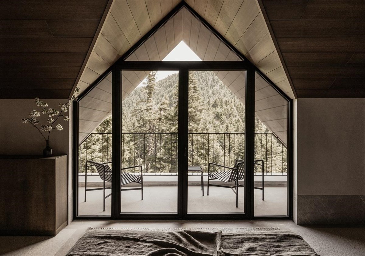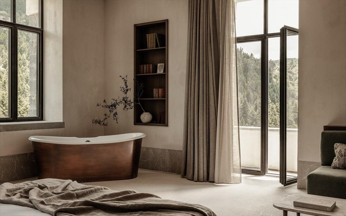 Ana SantlΕμπνευσμένοι από την ιστορία του κτιρίου και την απομονωμένη θέση του, οι γνωστοί αρχιτέκτονες και σχεδιαστές εσωτερικών χώρων K-Studio μαζί με το γραφείο Monogon ολοκλήρωσαν μια ιστορικά ακριβή ανακαίνιση συνεργαζόμενοι στενά με αρχαιολογικές αρχές και εξετάζοντας το αρχειακό υλικό για να εντοπίσουν τις προθέσεις των πρώτων αρχιτεκτόνων, ενώ ταυτόχρονα να συλλάβουν το σύγχρονο όραμα της ιδιοκτησίας. Το αποτέλεσμα είναι μια αφθονία διατηρητέων δαπέδων από γκρι ασβεστόλιθο, ξύλο και μωσαϊκό σε συνδυασμό με πρόσφατα προστιθέμενες, τοπικής προέλευσης πέτρες και terrazzo, καθώς και δοκάρια από ξύλο καστανιάς. Τα φυσικά φινιρίσματα συμπληρώνονται από μαλακά υφάσματα σε μία σειρά επίπλων που έχουν δημιουργηθεί και σχεδιαστεί σε αποκλειστικότητα και χειροποίητα ειδικά για το MANNA. Το αποτέλεσμα ενισχύεται το βράδυ μέσω της φυσικής ατμόσφαιρας, αποτέλεσμα του σχεδιασμού φωτισμού από την, Ελευθερία Ντέκο, την καταξιωμένη ειδικό που δημιούργησε επίσης τον νέο, πολλαπλά βραβευμένο φωτισμό για την Ακρόπολη. Τέτοια χαρακτηριστικά επεκτείνονται στα 32 δωμάτια. Διατηρώντας τις αυθεντικές ψηλές οροφές, κάθε χώρος είναι εξαιρετικά φωτεινός επιτρέποντας ουσιαστικά στο παρθένο ελατό δάσος να εισέλθει μέσα σε κάθε εσωτερικό σκηνικό.