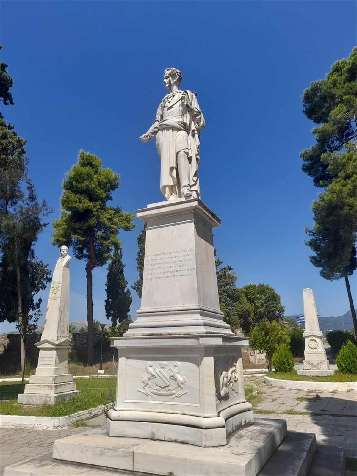 Στο κέντρο του Κήπου των Ηρώων δεσπόζουν το μνημείο του Μάρκου Μπότσαρη, αντίγραφο του Γεωργίου Μπονάκου, από τον Γάλλο γλύπτη David d’Angers και ο ανδριάντας του Άγγλου φιλέλληνα Λόρδου Βύρωνα έργο του Γεωργίου Βιτάλη.