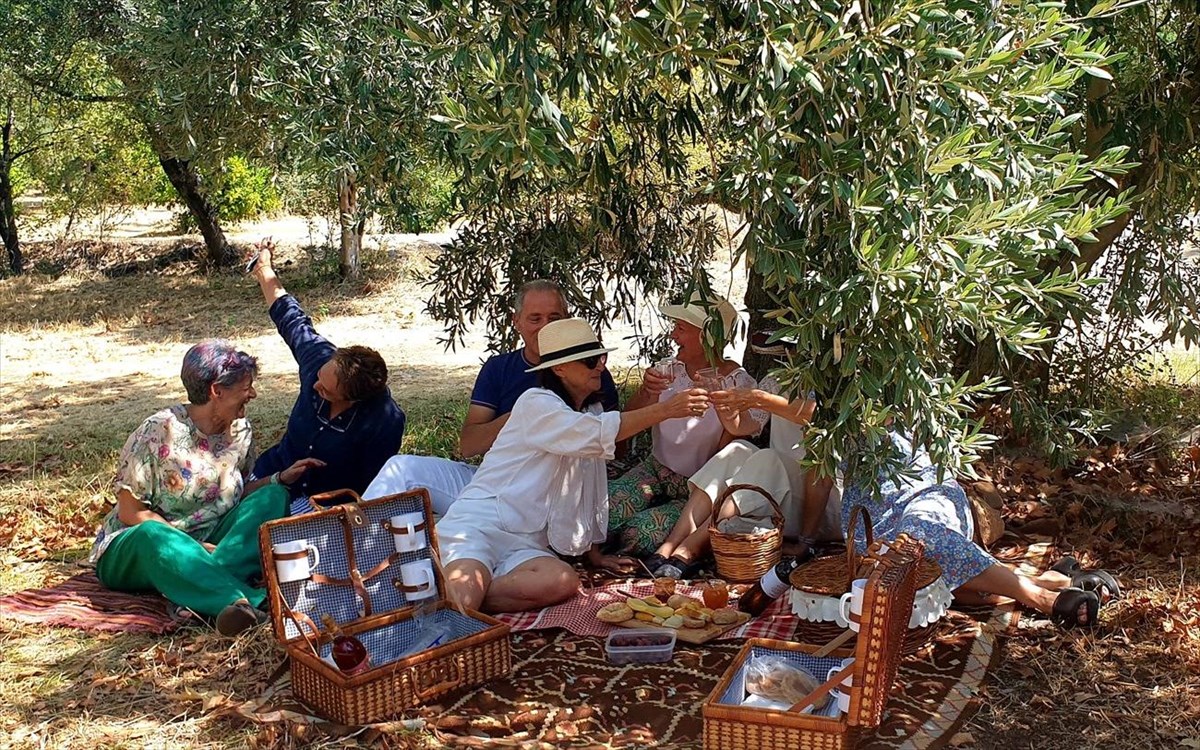 Και ήρθε η μέρα της κεντρικής εκδήλωσης... Η μέρα που αναβίωσαν οι αφηγήσεις που με νοσταλγία μοιράστηκαν οι παλαιότεροι κάτοικοι για περασμένες δεκαετίες όταν γειτονιές και οικογένειες μαζεύονταν και έτρωγαν μαζί στη φύση. Στο ιστορικό ελαιώνα δίπλα στη θάλασσα, στήθηκε ένα τεράστιο πικνίκ με τις δραστήριες κυρίες του Πολιτιστικού Συλλόγου Ροβιών να μοιράζονται με τους παρευρισκόμενους τις αγαπημένες τους τοπικές συνταγές, όπως ρεβύθια παντρεμένα με μανέστρα, τυροπιτάρια, γαύρο μαριναρισμένο στο ξύδι και το αλάτι, λουκουμάδες με μέλι και γύρη μεταξύ άλλων... Στο πλούσιο μπουφέ συμμετέχοντες που ήρθαν με τα καλαθάκια τους πρόσφεραν και αυτοί τη δημιουργία τους.
