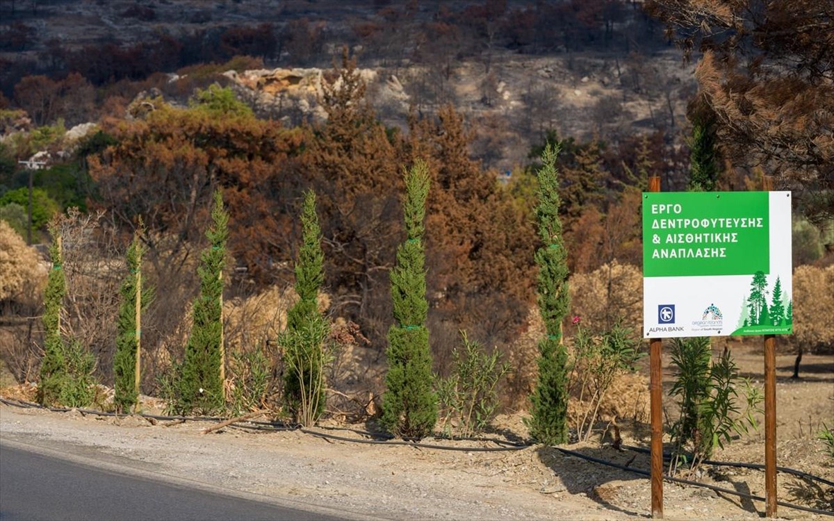 Να σημειωθεί ότι παράλληλα με το έργο δεντροφύτευσης, η δραστηριότητα της Τράπεζας δεν σταματά εκεί. Η Alpha Bank συμμετέχει χρηματοδοτικά στην εκπόνηση μελέτης για τη δημιουργία αντιδιαβρωτικών, αντιπλημμυρικών και έργων αναδάσωσης την οποία έχει αναλάβει η Ένωση Ξενοδόχων Ρόδου, ενώ ανταποκρίθηκε και στις έκτακτες συνθήκες του καλοκαιριού στο νησί με την οικονομική υποστήριξη του έργου του Ερυθρού Σταυρού, την παροχή ειδών ατομικής προστασίας σε εθελοντές πυροσβέστες και τη συνεισφορά στο έργο της ΑΝΙΜΑ, για την περίθαλψη του προστατευόμενου είδους ελαφιού της Ρόδου.