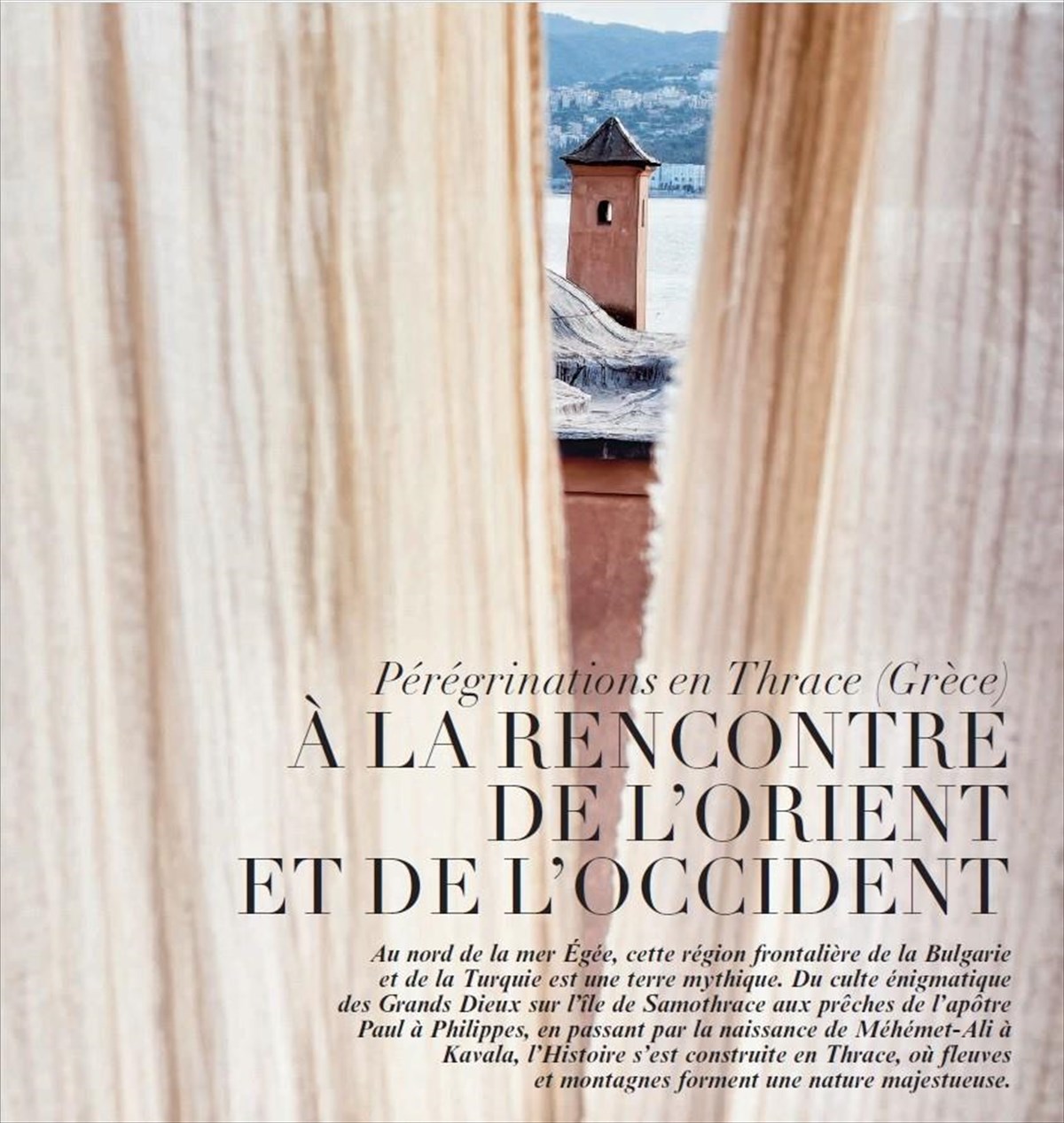 Πρόκειται για ρεπορτάζ της συντάκτριας του περιοδικού «Le Figaro Magazine» Sarah Chevalley, που θεωρείται μία από τις κορυφαίες ταξιδιωτικές δημοσιογράφους της Γαλλίας. Η κα Sarah Chevalley και ο φωτογράφος κος Eric Martin επισκέφθηκαν μεταξύ 24 Ιουνίου και 03 Ιουλίου 2024 την Ελλάδα και συγκεκριμένα την Ανατολική Μακεδονία και Θράκη, με σκοπό τη συλλογή του απαραίτητου υλικού από περιοχή της Καβάλας, του αρχαιολογικού χώρου των Φιλίππων, της Θάσου, της Σαμοθράκης, της Ξάνθης και της Αλεξανδρούπολης.