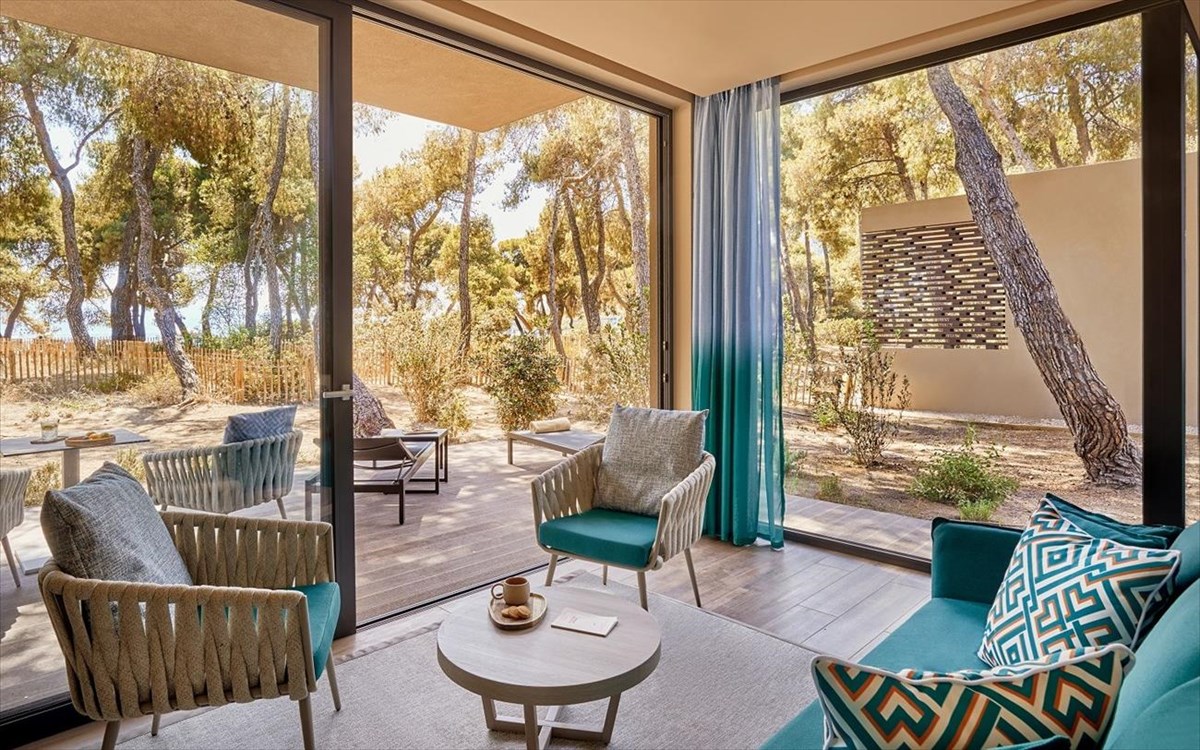Η εν λόγω ανακαίνιση αύξησε τη δυναμικότητα του resort από 439 σε 497 δωμάτια, όλα σχεδιασμένα με γνώμονα τη βιωσιμότητα και βελτίωσε σημαντικά τις παροχές του. Οι κύριες βελτιώσεις περιλαμβάνουν την ανακαίνιση των deluxe beach rooms, καθώς και την αναβάθμιση των κεντρικών εγκαταστάσεων του resort, που περιλαμβάνουν τόσο τα δωμάτια όσο και τις εγκαταστάσεις ευεξίας και αθλητικών δραστηριοτήτων. Σε συνεργασία με τη Sothys δημιουργήθηκε ένας νέος χώρος ευεξίας, προστέθηκαν μαθήματα yoga by Heberson και κατασκευάστηκαν γήπεδα padel. Επιπλέον, μια ολοκαίνουργια πτέρυγα δωματίων στην καρδιά του πευκοδάσους, η οποία πλαισιώνει τη Zen Swimming Pool, συμπληρώνει τις υπάρχουσες επιλογές με την προσθήκη Beach Bar. Παράλληλα, το Mini Club μεταφέρθηκε κοντά στα γήπεδα τένις για ευκολότερη πρόσβαση. Ο σχεδιασμός της επέκτασης που έγινε από την Αφροδίτη Καρτελιά και Πρόεδρο της TechKM S.A. αποτυπώνει τον ελληνικό τρόπο ζωής, από τον οποίο άντλησε έμπνευση ο interior designer Jean Philippe Nuel που επιμελήθηκε τους εσωτερικούς χώρους.