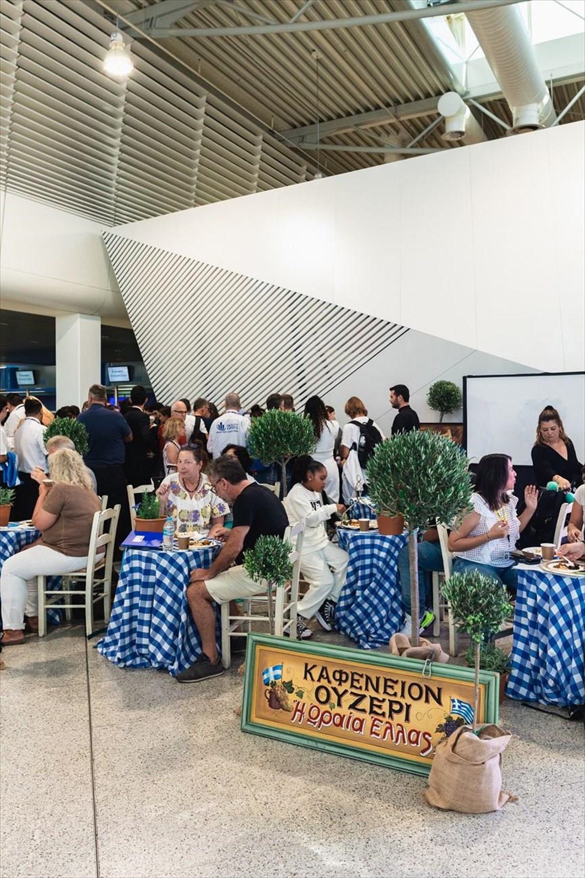 Κι ακόμη, ενώ ένα LED wall ήταν διαρκώς γεμάτο αποφθέγματα Ελλήνων και ξένων προσωπικοτήτων, οι ταξιδιώτες και οι επισκέπτες «δοκιμάστηκαν» σ’ ένα Quiz γνώσεων για τα ήθη και τα έθιμα της ηπειρωτικής Ελλάδας και των νησιών, «φόρεσαν» ελληνικές φορεσιές στο Photobooth και «ταξίδεψαν» στα μαγικά Μετέωρα μέσω VR. Δεν έλειψε το διαχρονικό συρτάκι με μια σύγχρονη εκδοχή του και αναμνηστικά δώρα γεμάτα το μεράκι, κέφι και γεύσεις του τόπου μας.